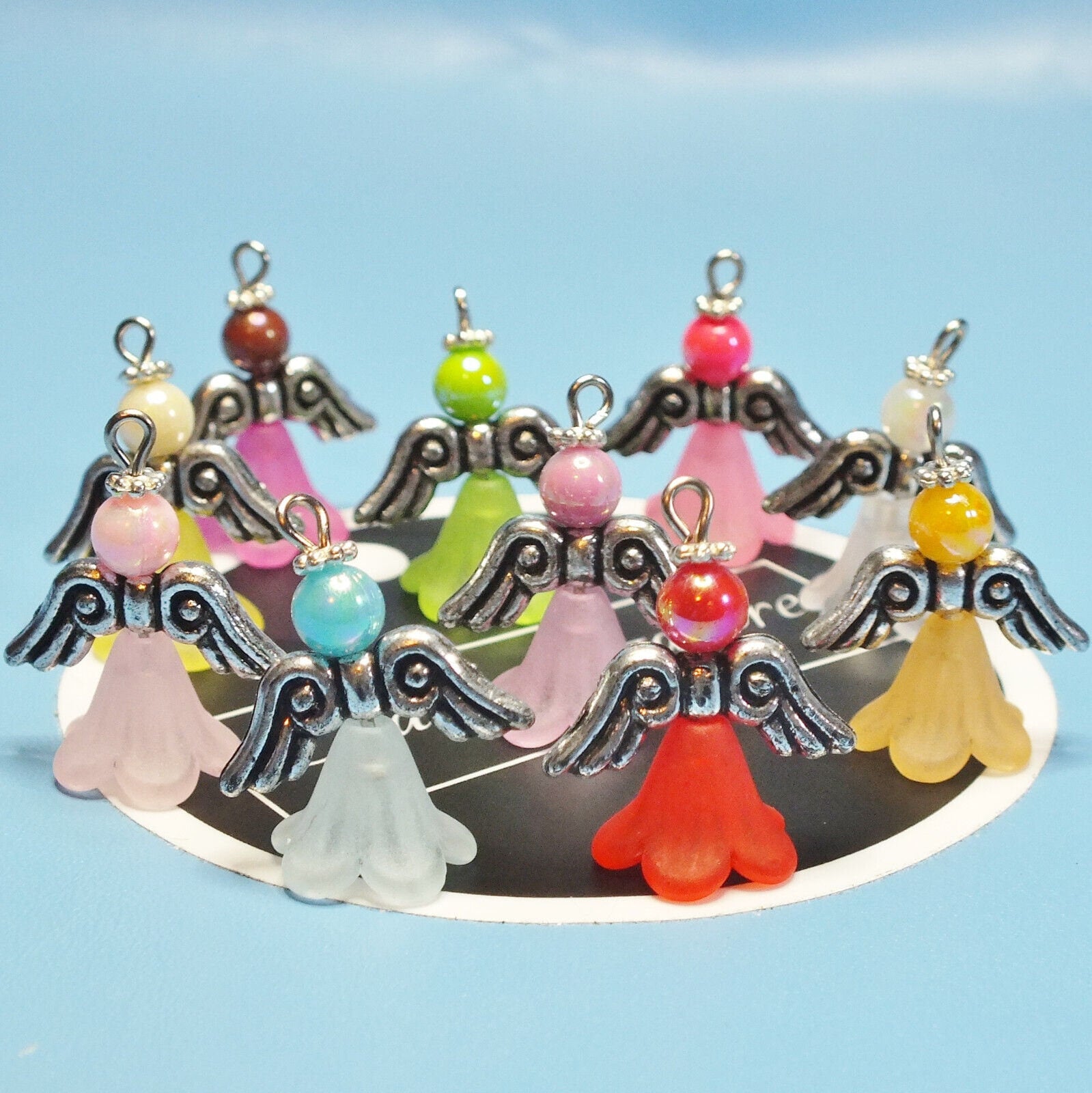 Rainbow frosted large angel charms (10-100pcs, plain, on clasps or lanyards)