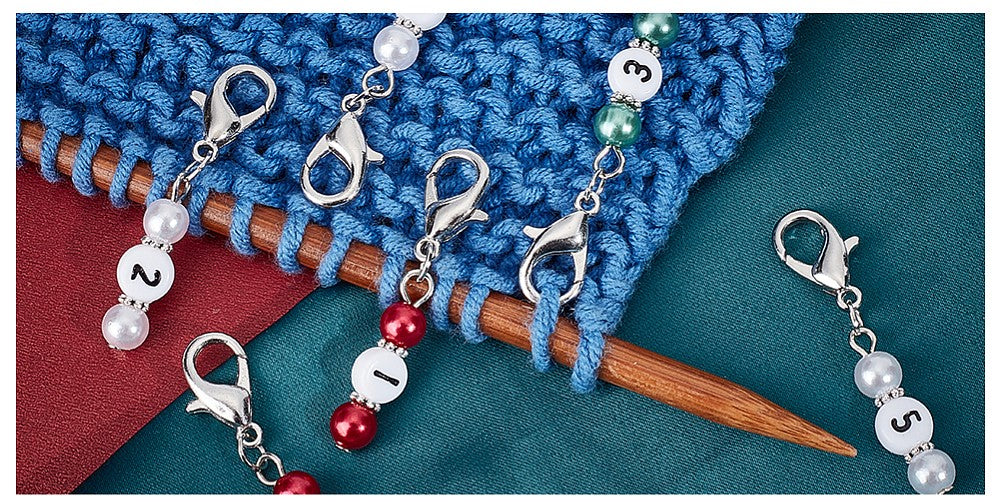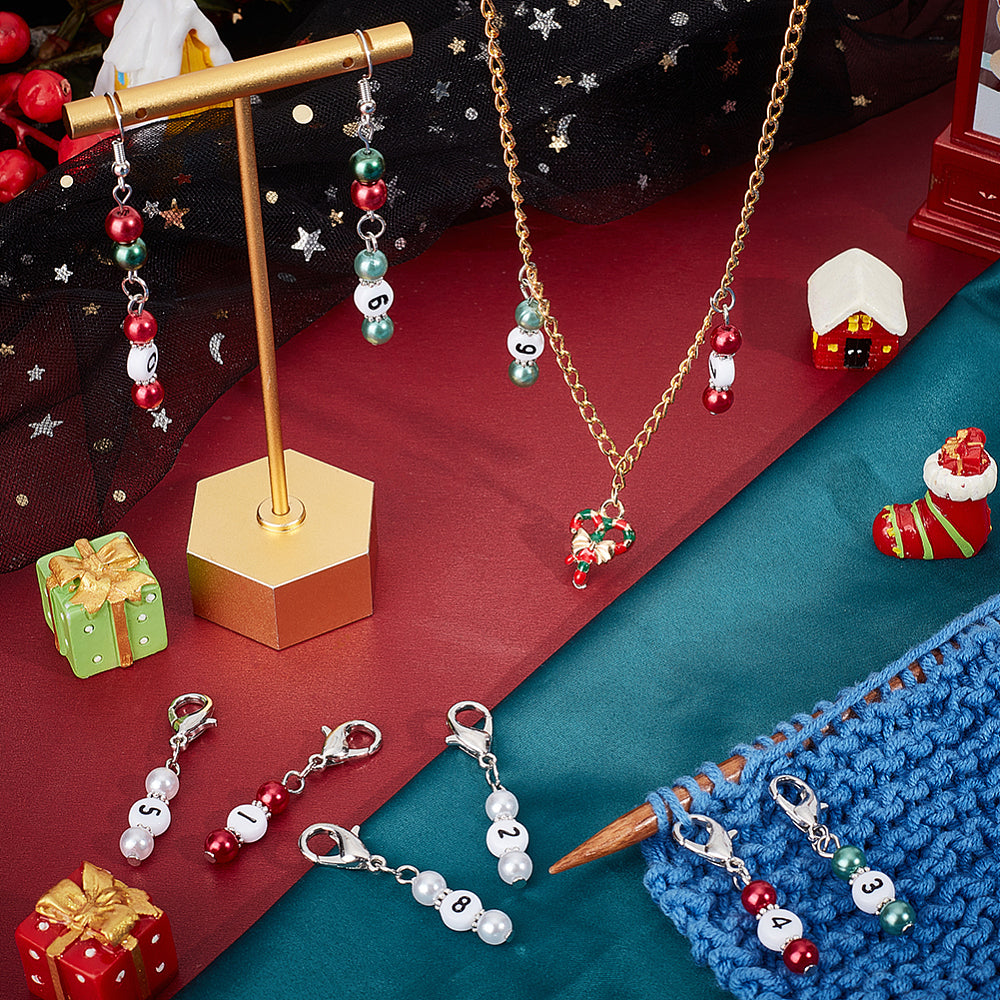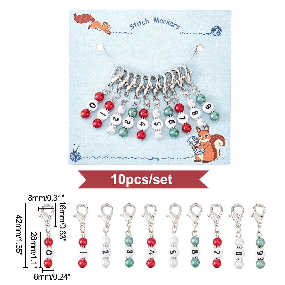 10pcs Christmas stitch markers, numbered 0-9 beaded dangle charms on clasps
