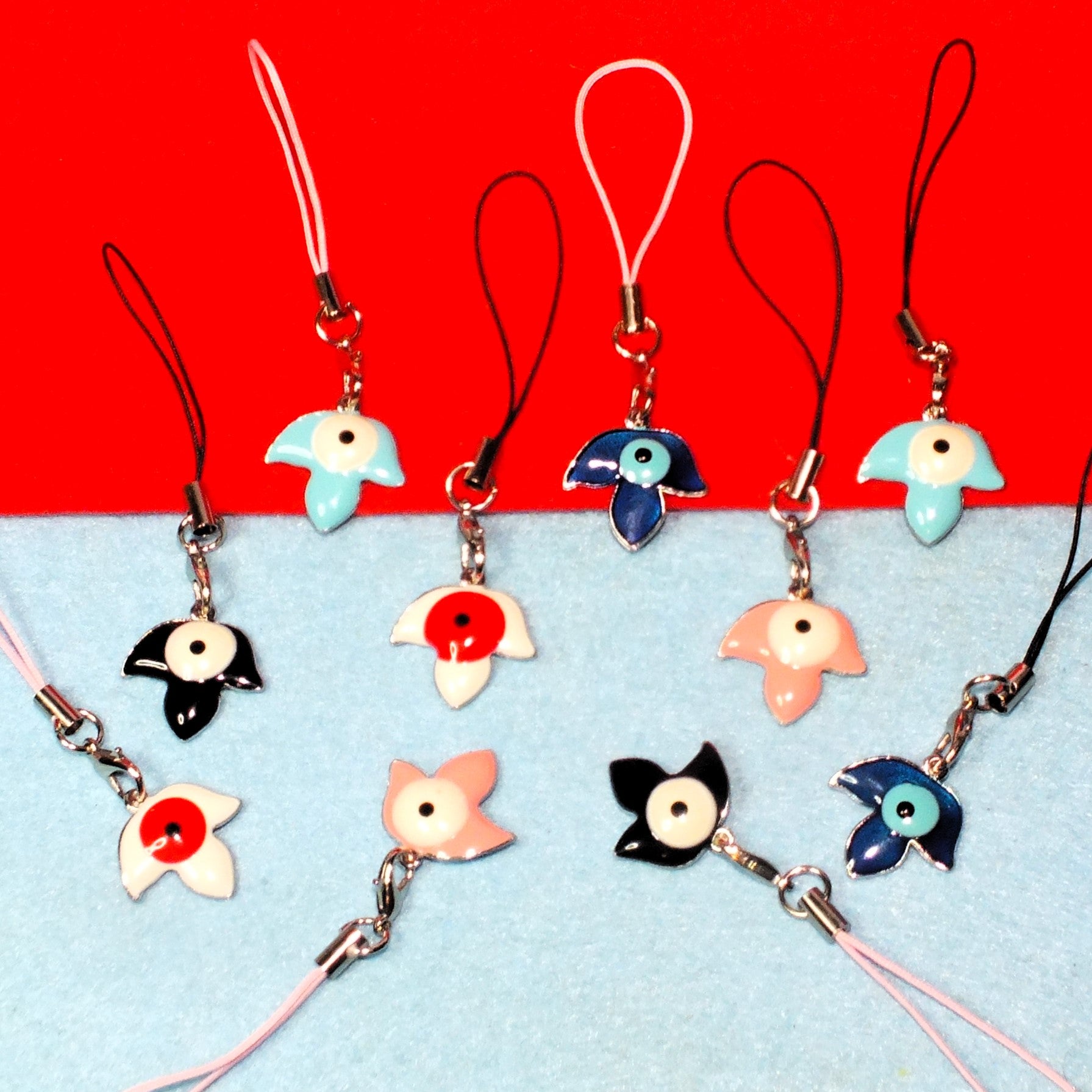 - Details: Mixed metal alloy & multicoloured enamel handmade EVIL EYE charms / pendants, ideal for bag / phone / key charms or similar. Each is on either a black or pink lanyard (5 of each).