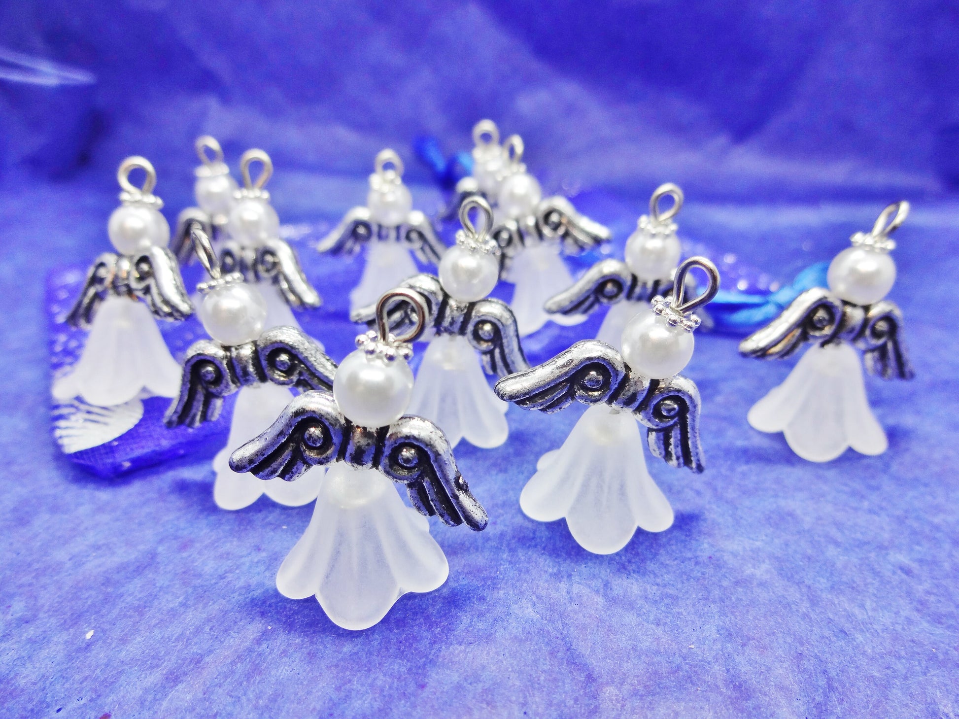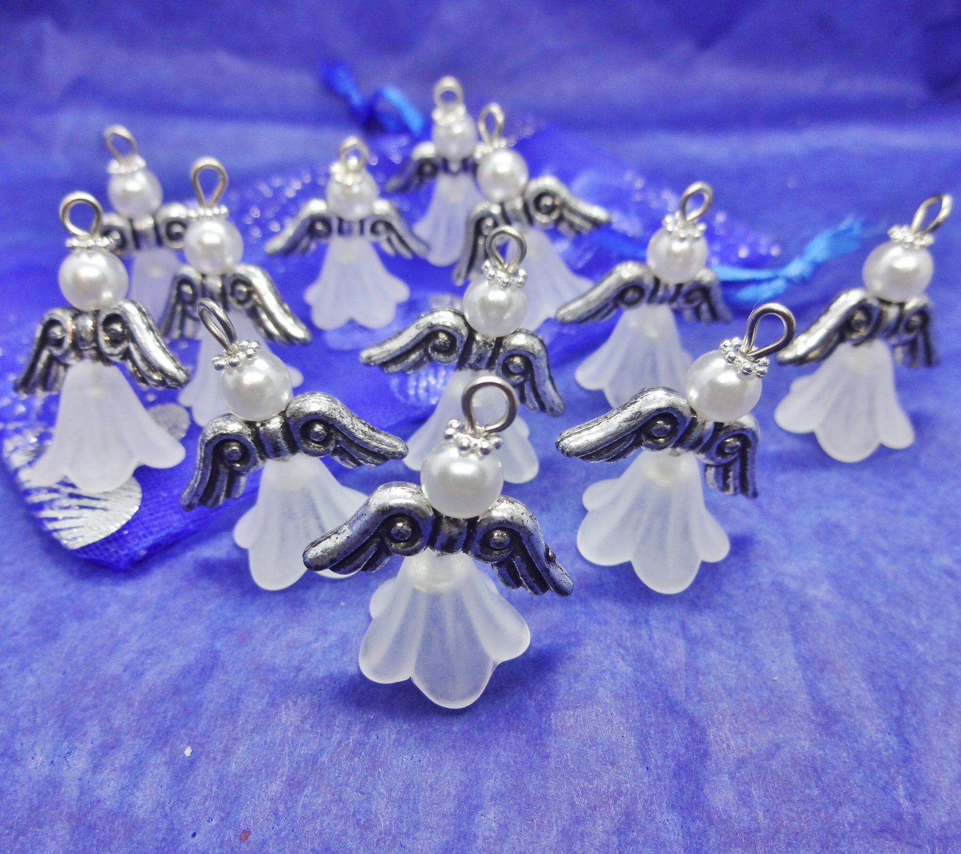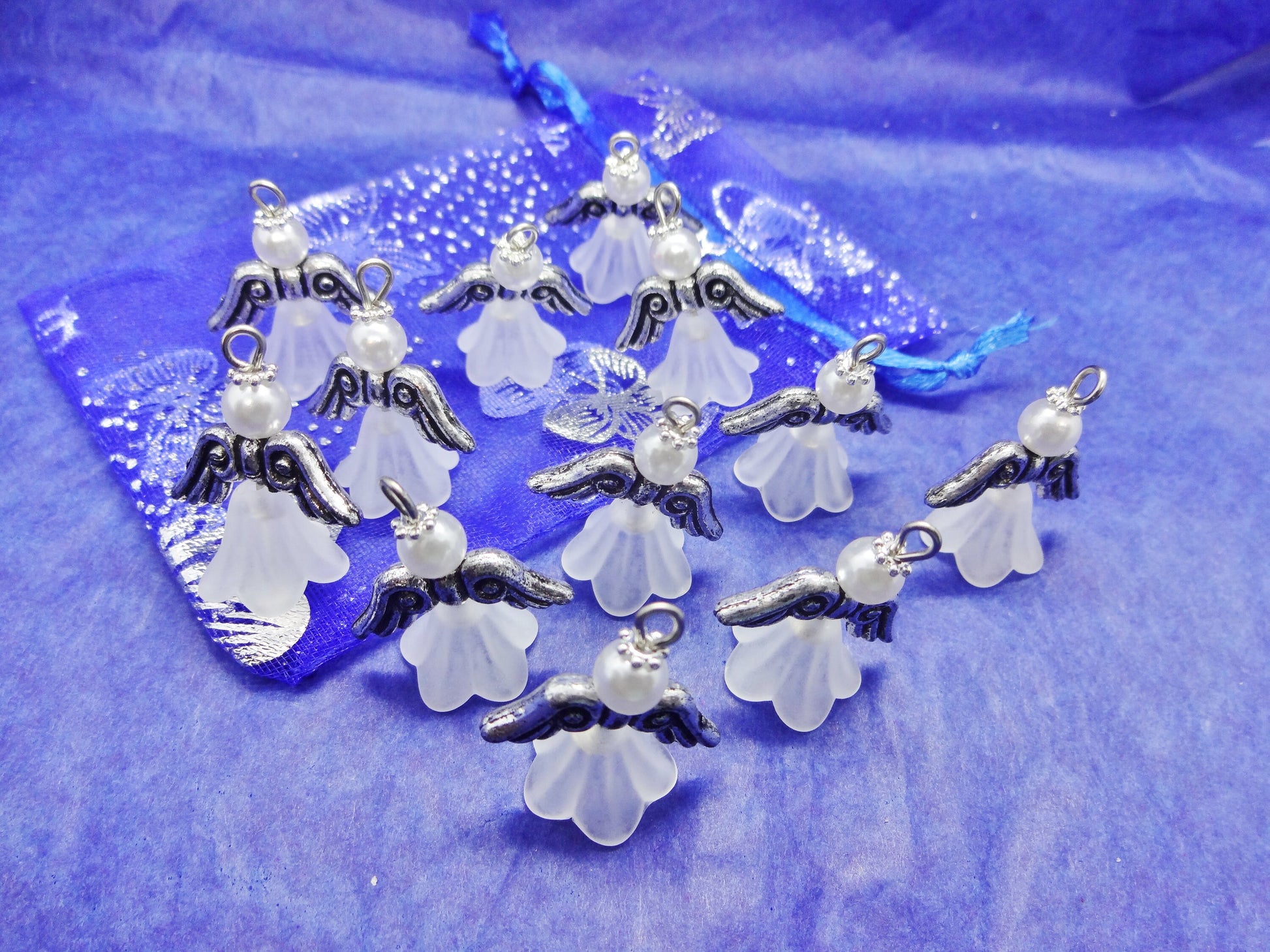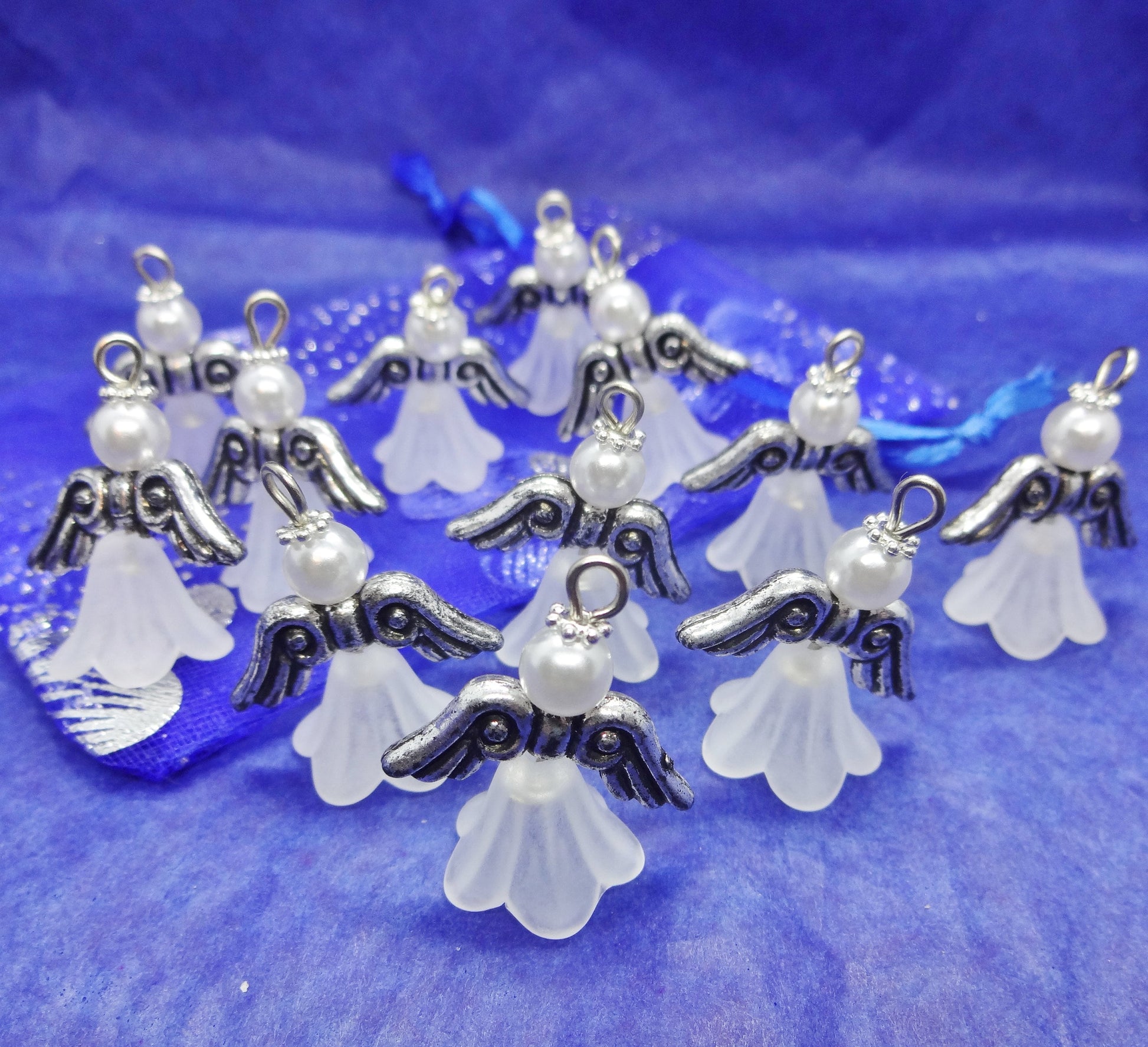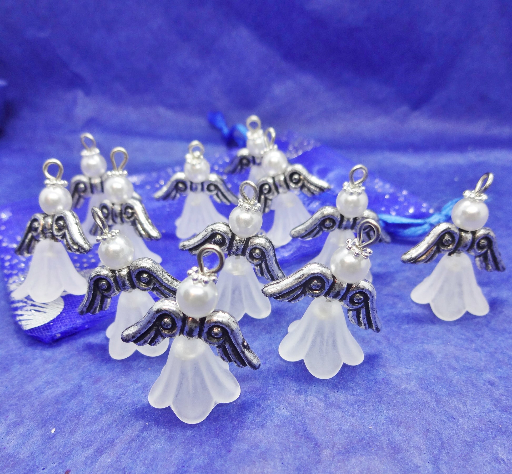 White frosted large angel charms (12-100pcs, plain, on clasps or lanyards)