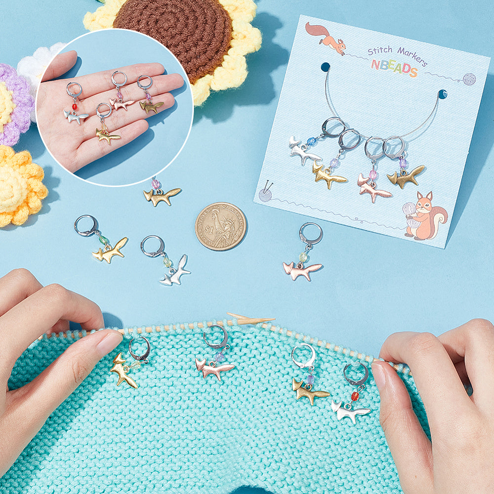 Charm type - Pretty assorted metal tone fox charm stitch markers / dangle charms on leverback hoops.