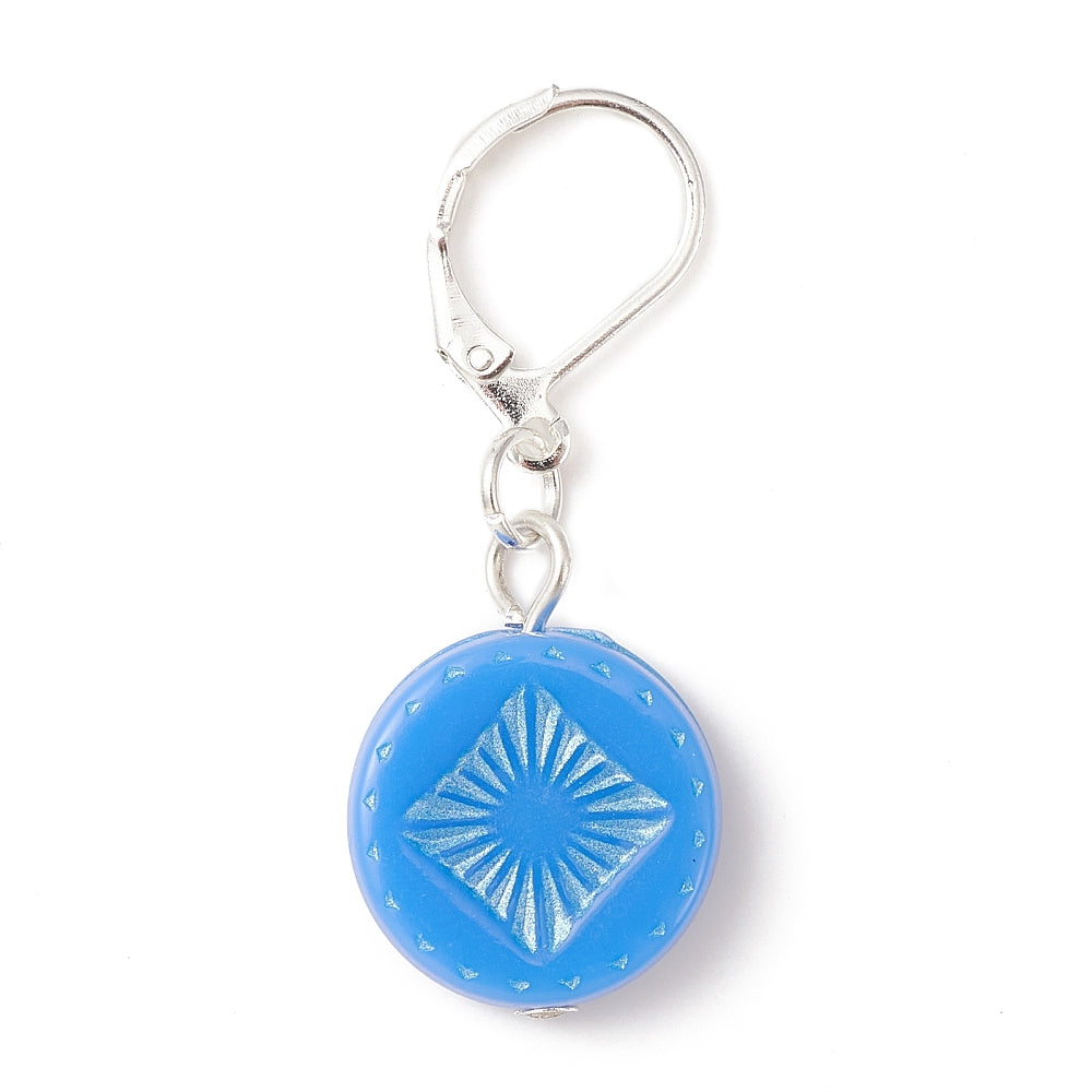 Charm type - Rhombus pattern round acrylic mixed colour stitch markers / dangle charms on leverback hoops. Provided in a randomly coloured organza bag.