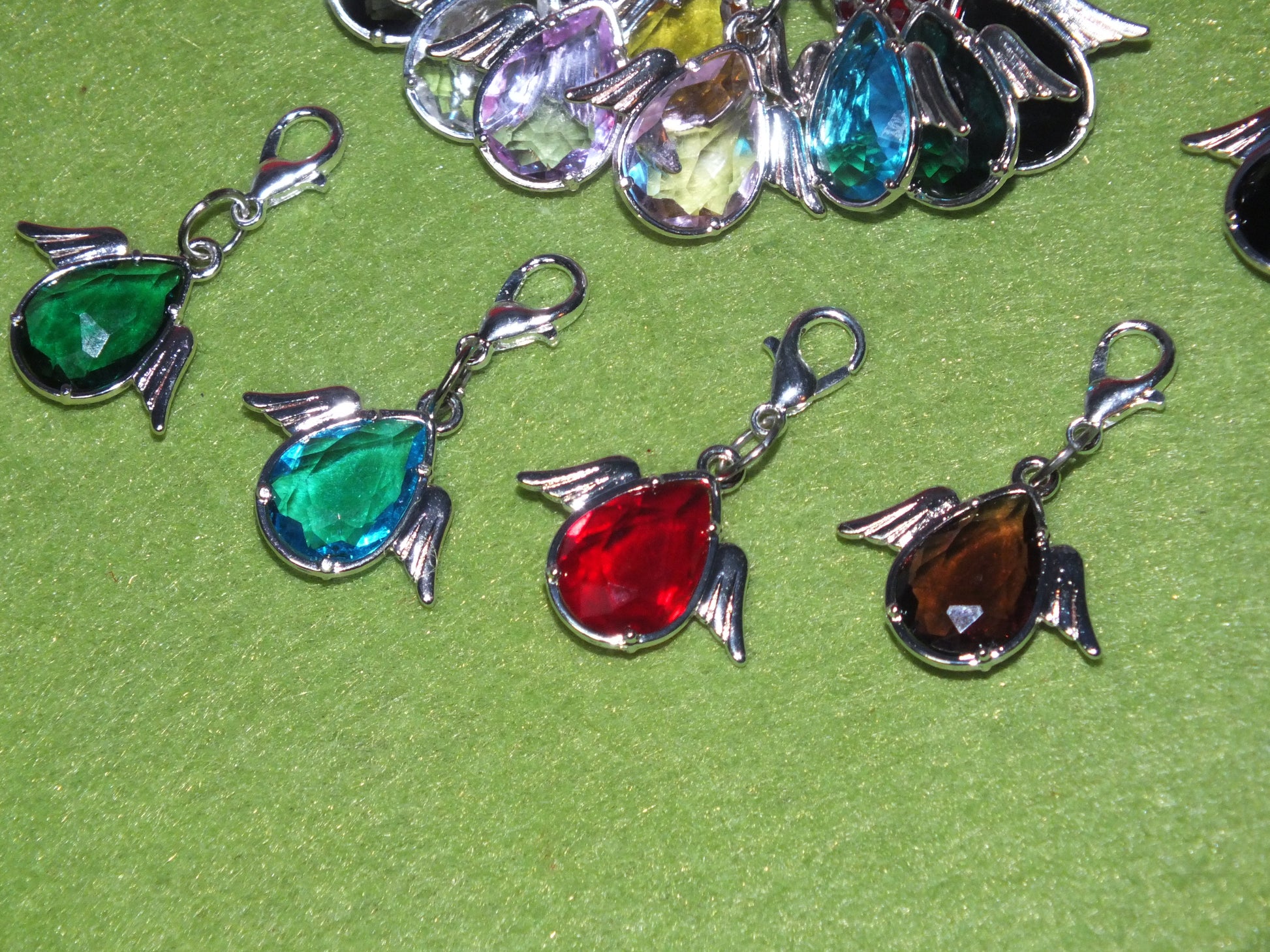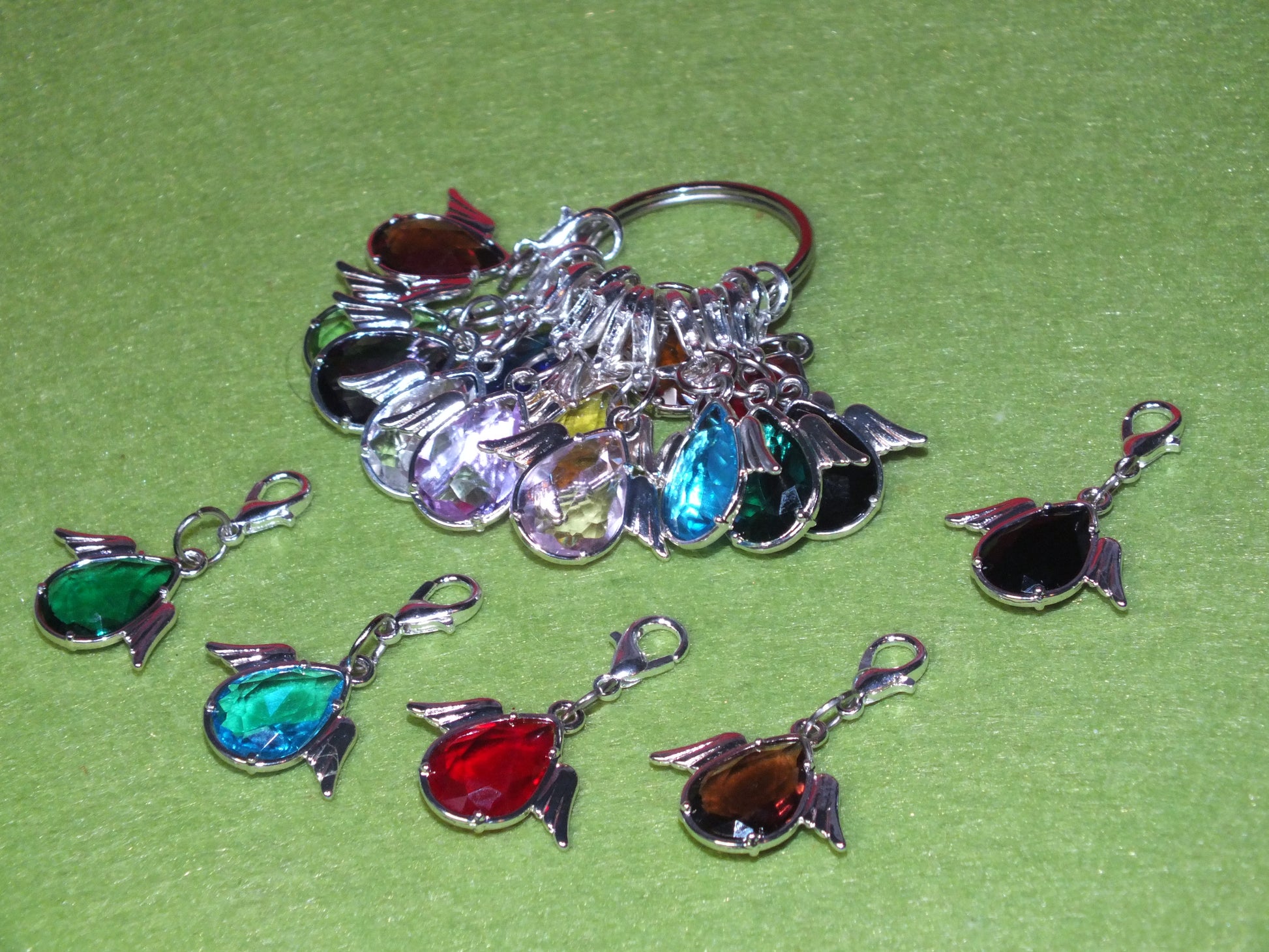 Charm type - Handmade glass & metal alloy Guardian Angel mixed colour stitch markers / dangle charms on clasps. Provided in a randomly coloured organza bag.
