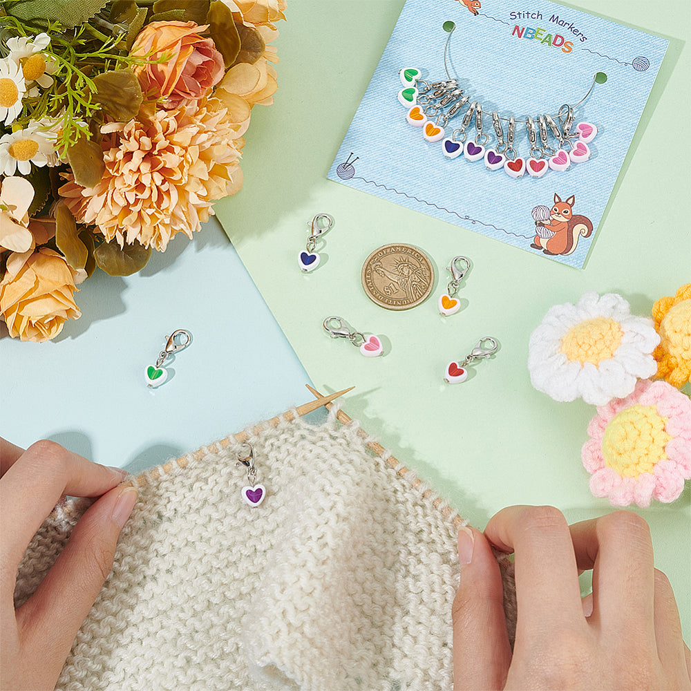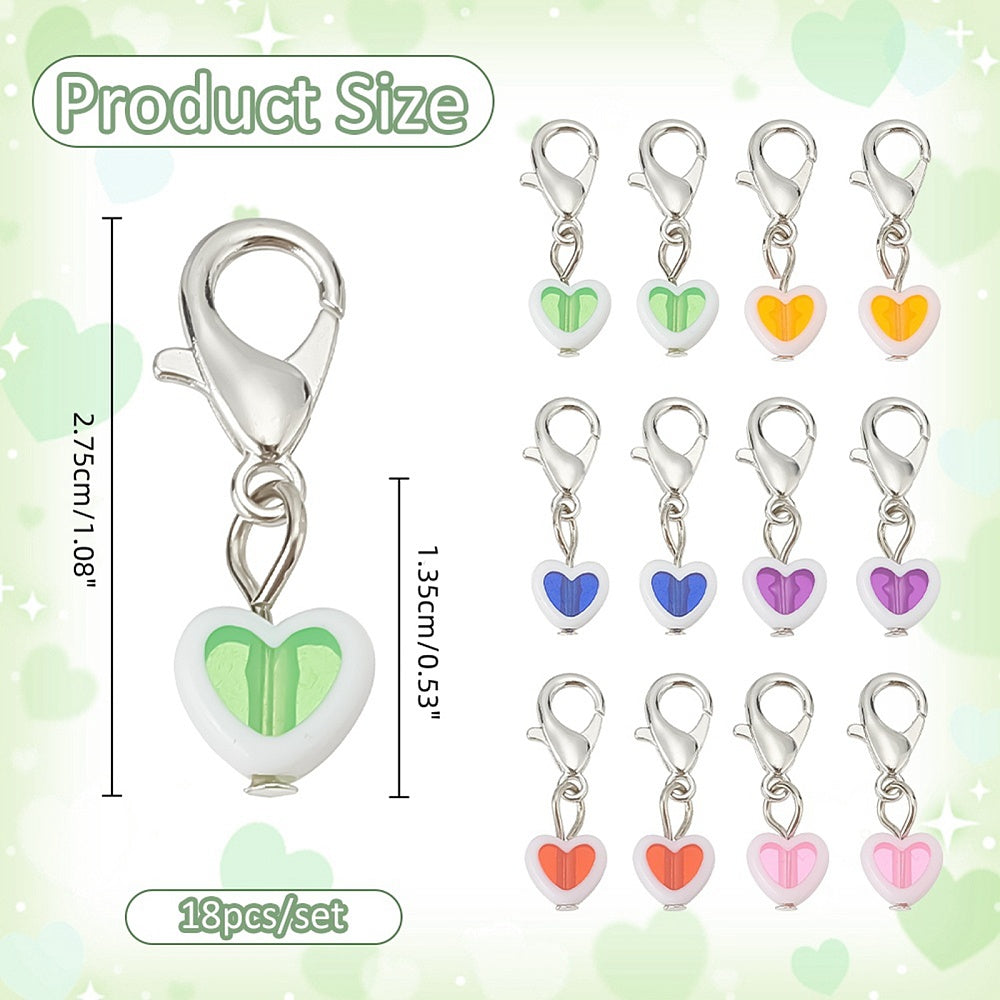 18pcs stitch markers, heart dangle charms on lobster clasps