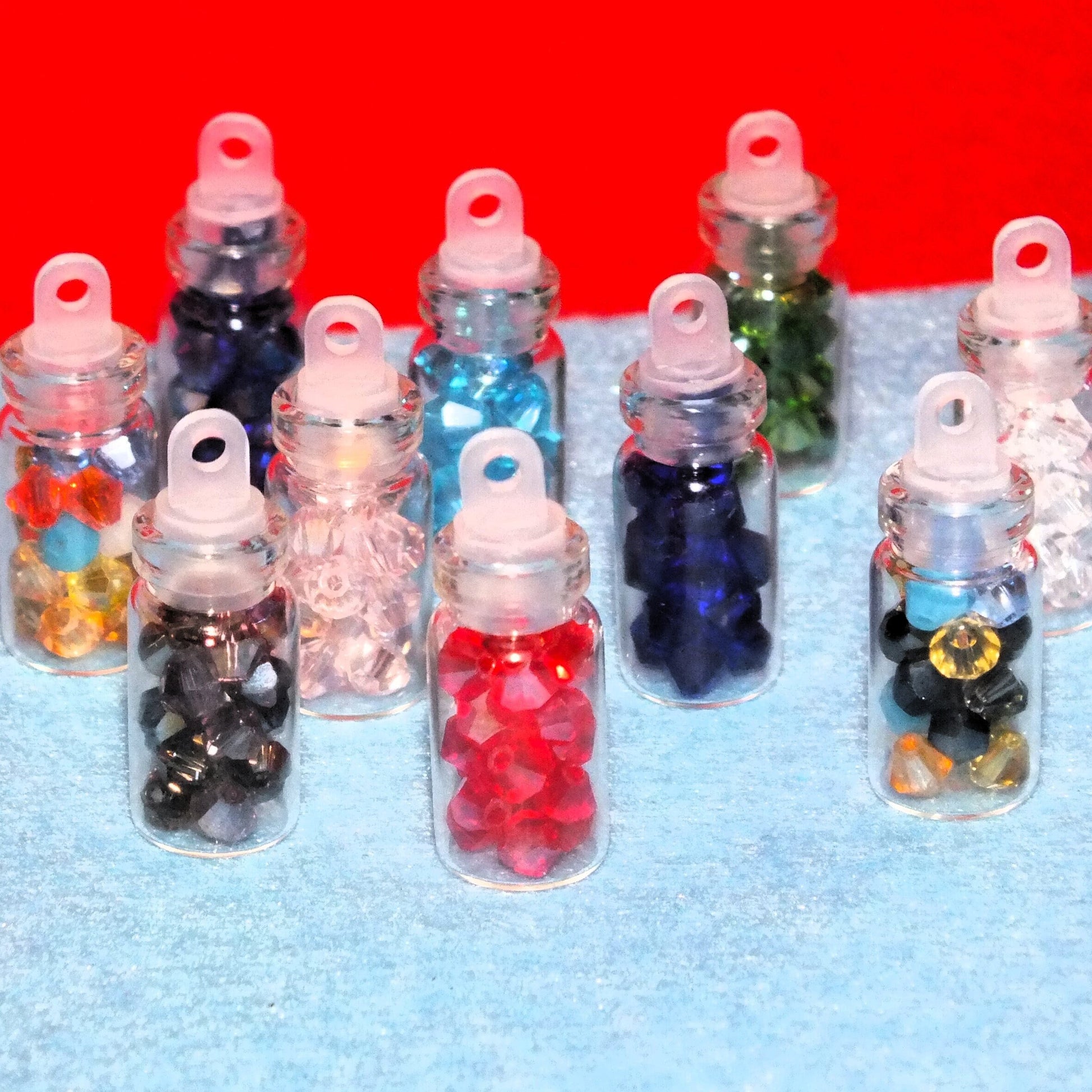 - This pack size - 10 glass wishing bottles, each containing 20pcs crystal glass bicones (4mm).
