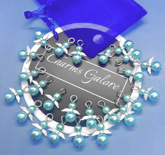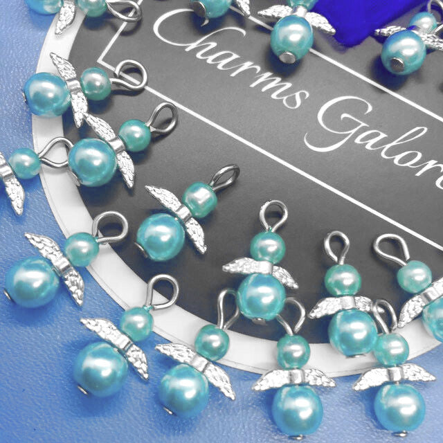 Blue pearl angel charms (24pcs, plain, on clasps or lanyards)