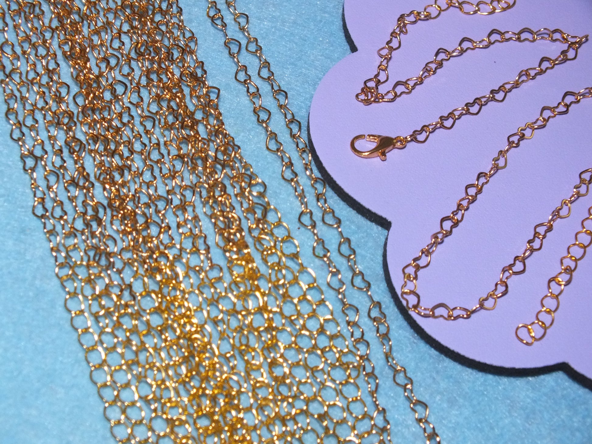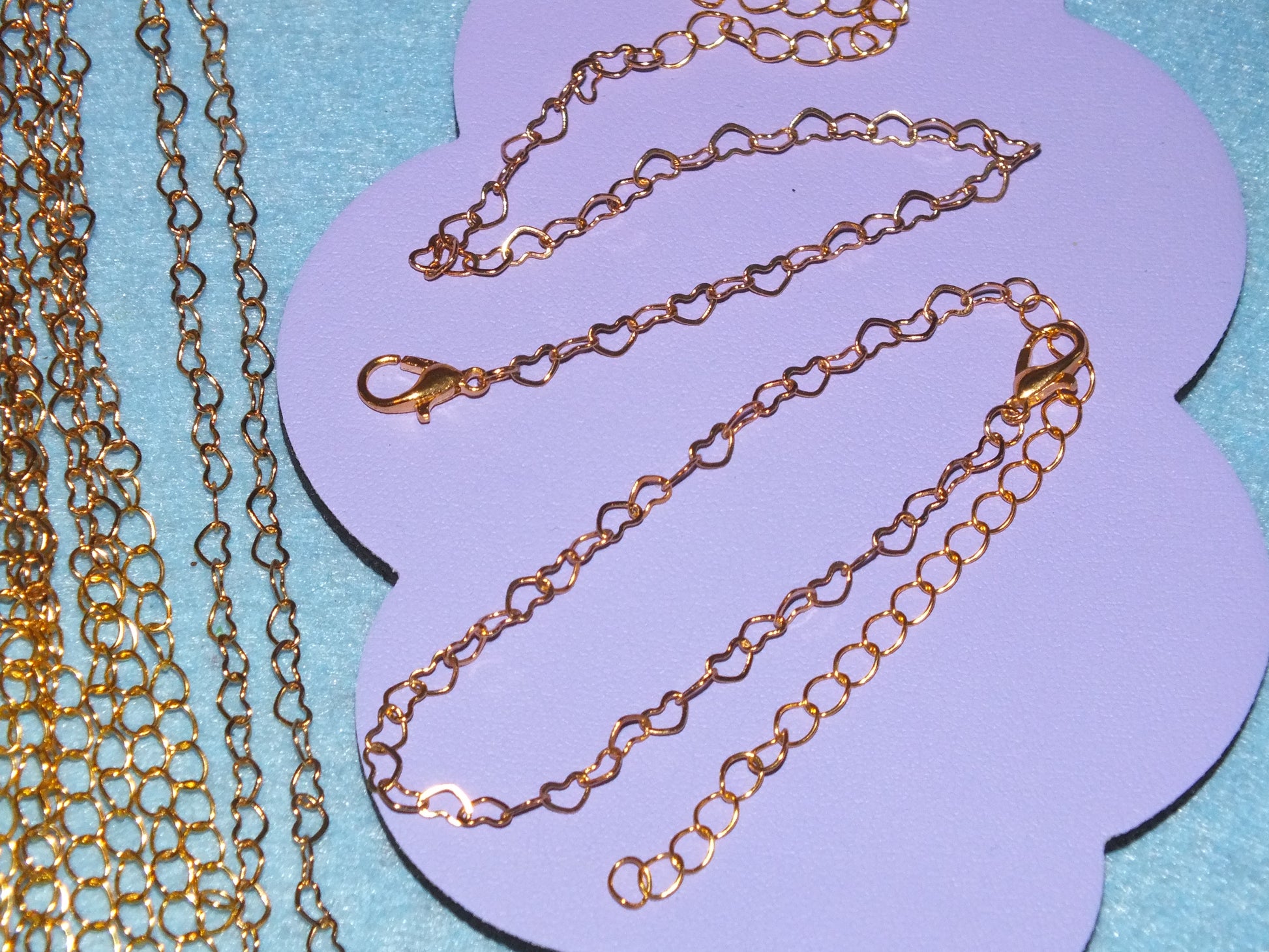 Detail - Pretty handmade bracelets, slim gold tone with heart shaped chain. The length of each bracelet is approx. 6.5" with a long extender chain (approx. 2"-2.5"), and each closes via a lobster clasp. There is some variation, due to the handmade element of each!