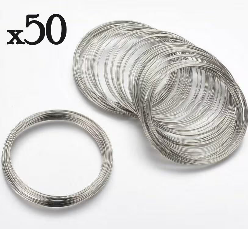 50 loops of memory wire - 50mm diameter silver tone bracelet loop.