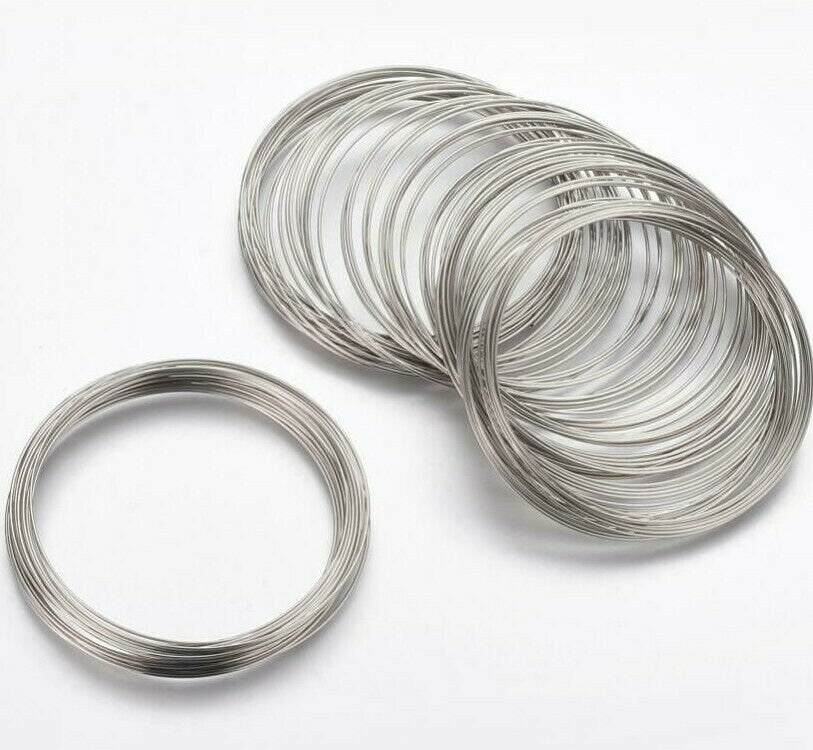 - Sizing - Silver tone steel memory wire, 50mm diameter loop / 0.6mm diameter wire (22 gauge)