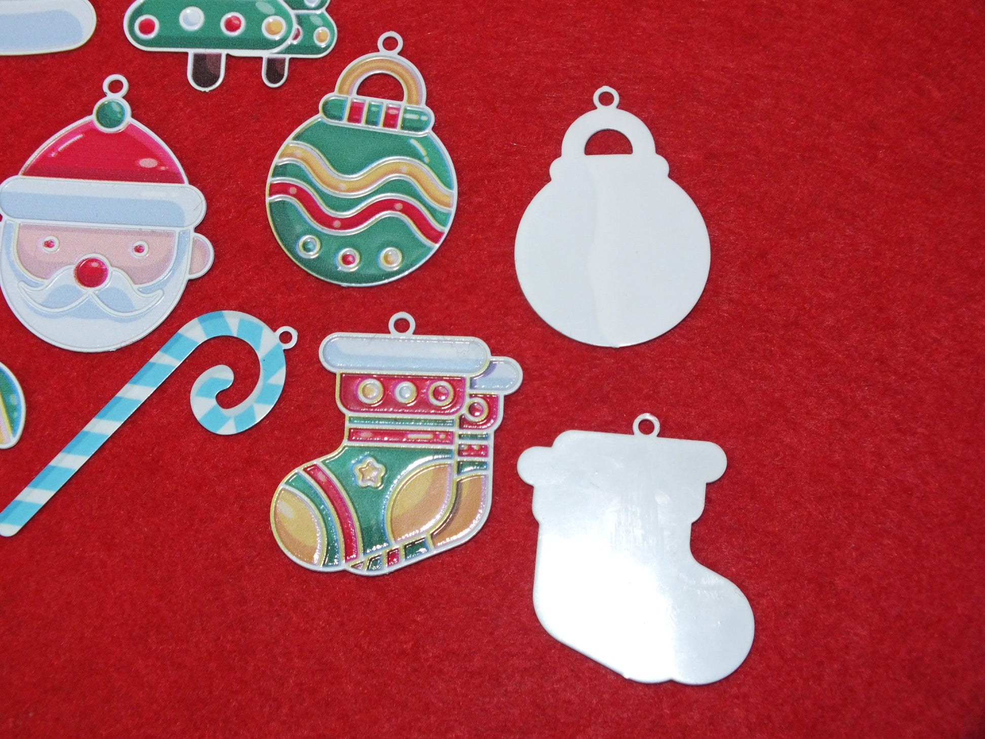 26pcs Christmas Mix Printed Metal Charms, Xmas Pendants - very slim