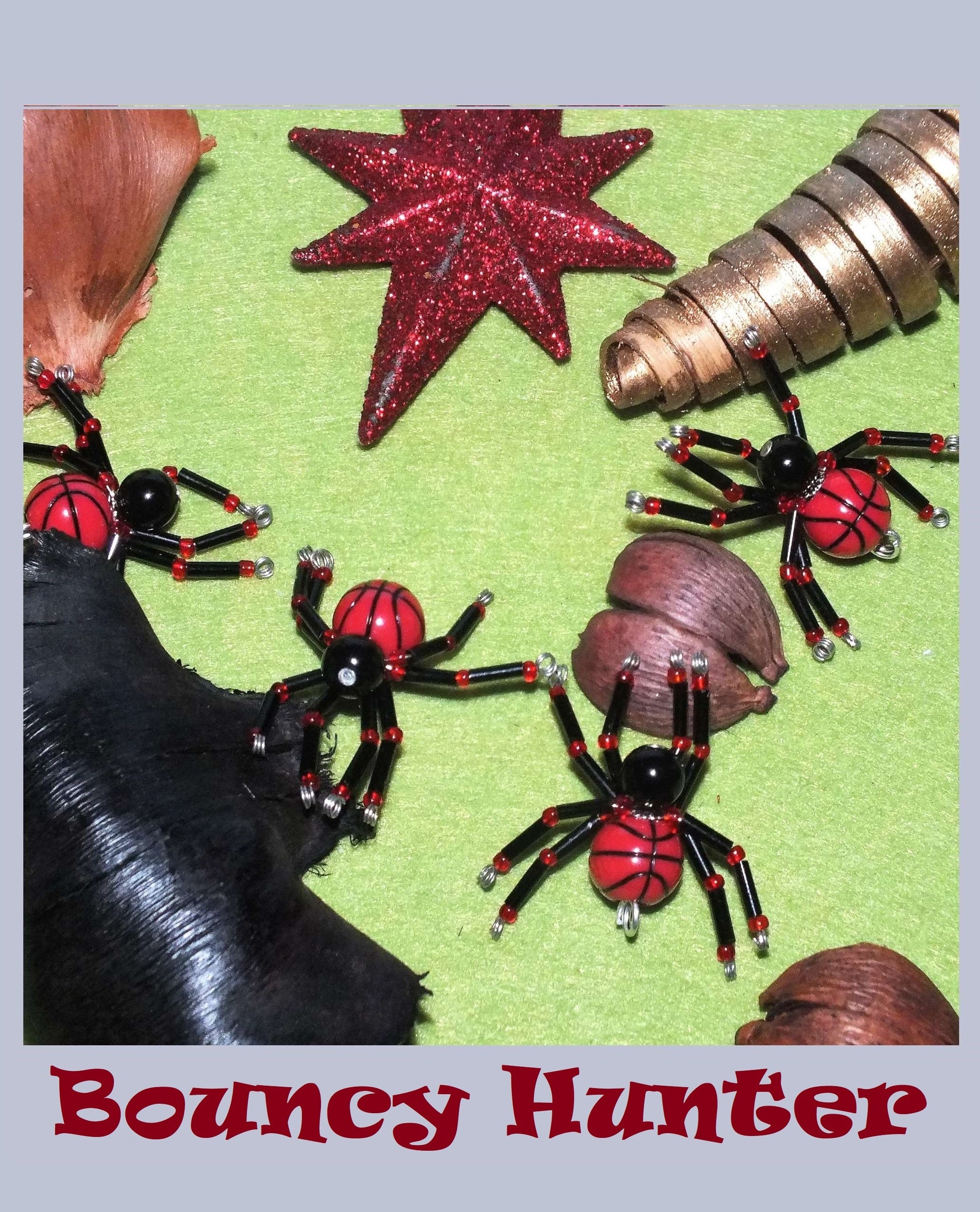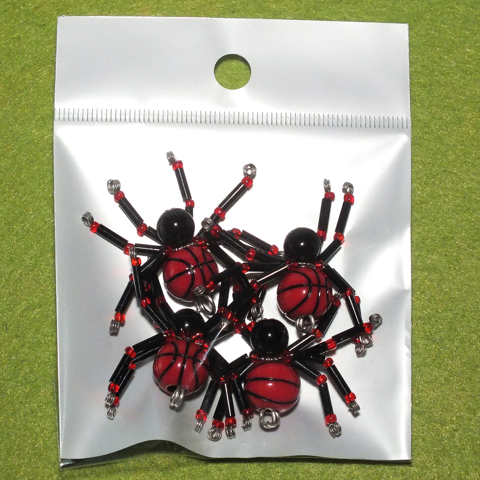 4-pack beaded spider charms - "Bouncy Hunter", handmade - plain or on lanyards