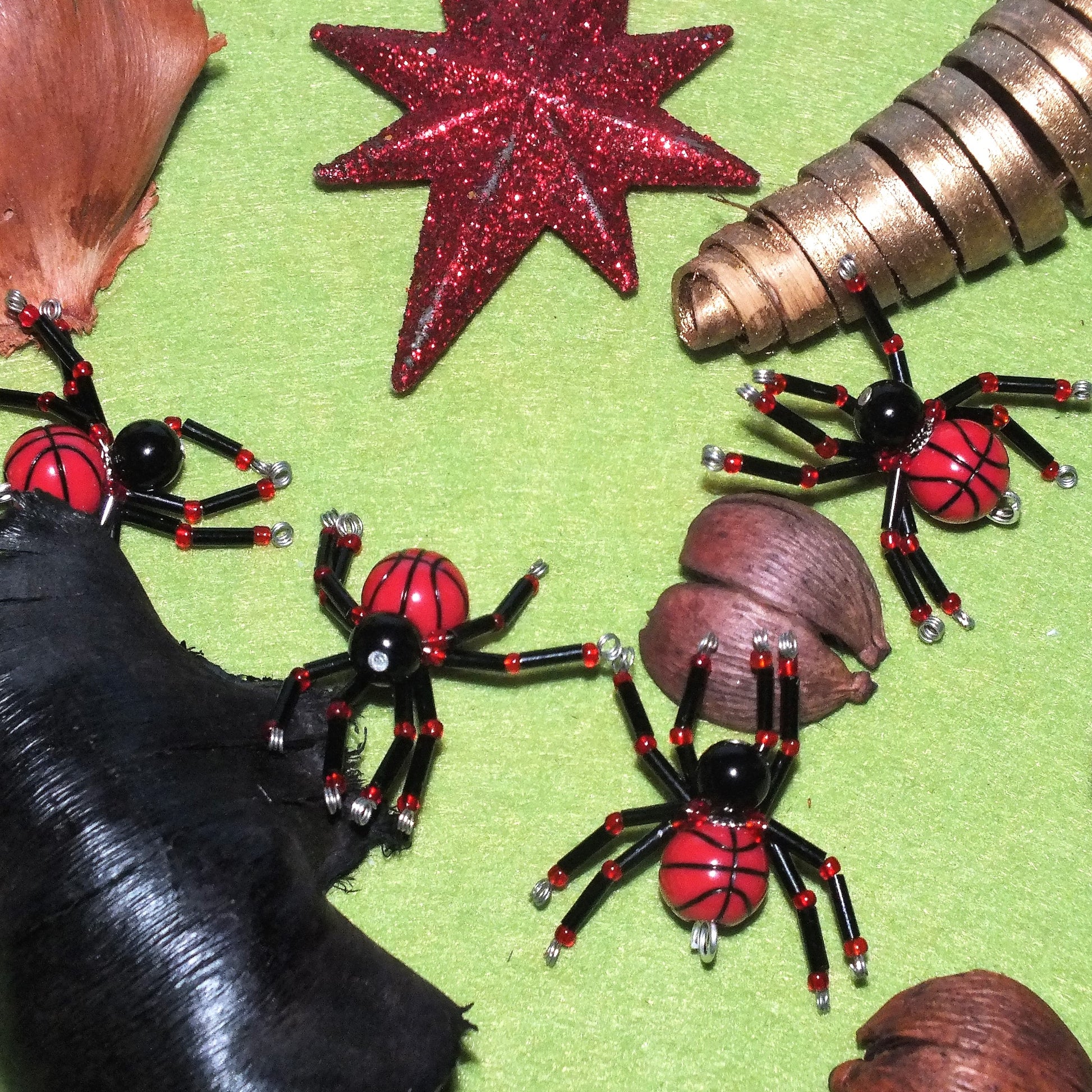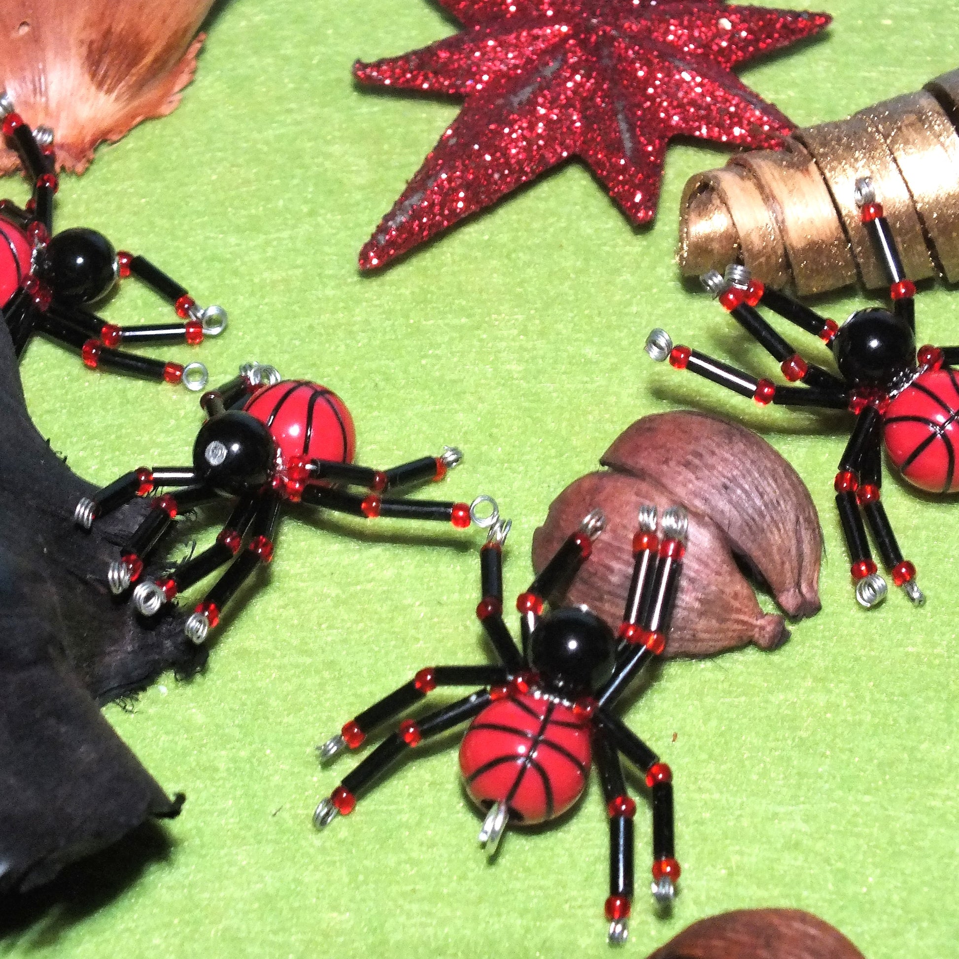 - 4-pack of pretty handmade beaded spider charms as shown, available either plain or on lanyards for hanging on a Christmas tree (or anywhere else!), your choice of style! A lovely little stocking filler, or halloween decoration!
