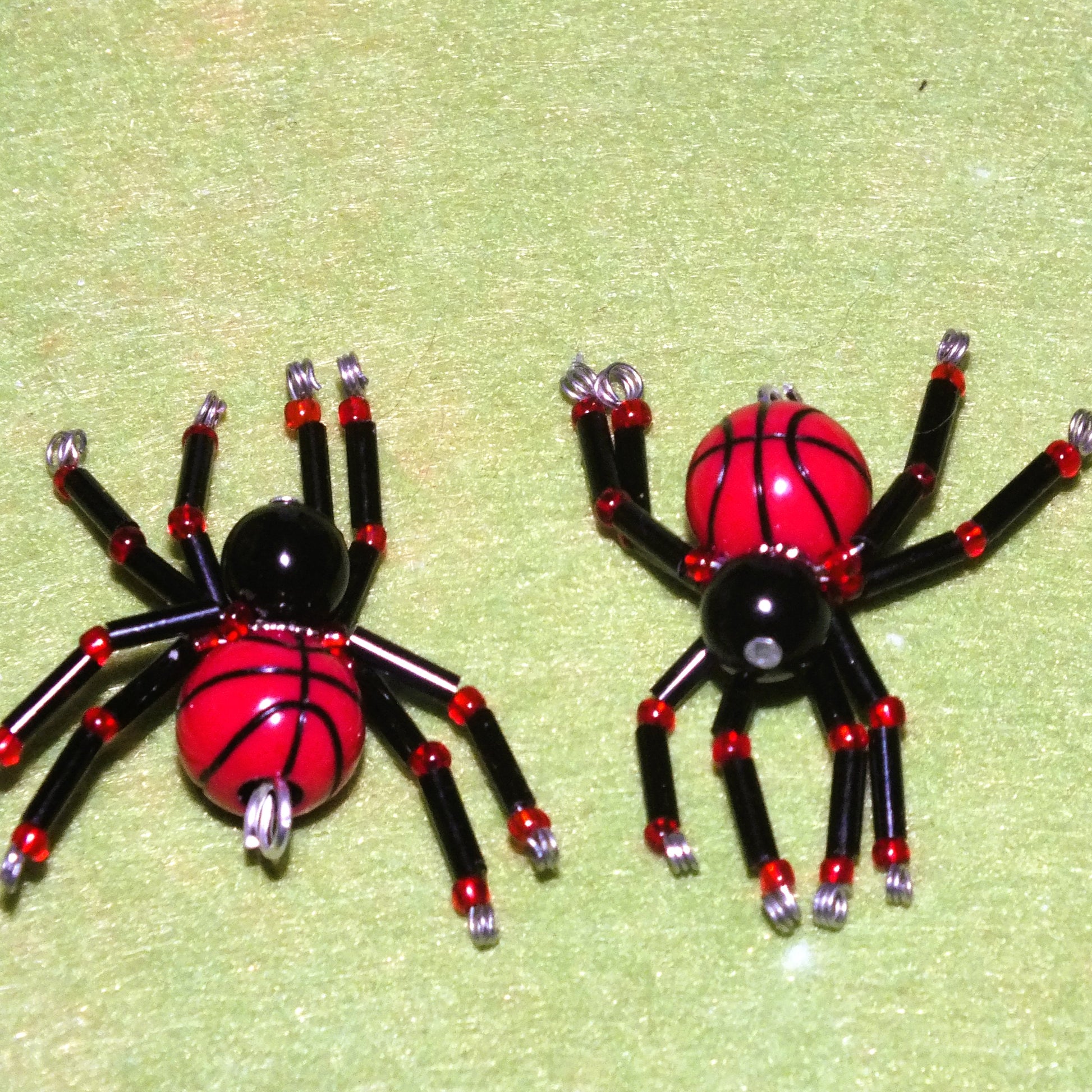 - Each spider is approx. 40mm in size, made from wire and beads (usually glass, some bodies/heads are acrylic), and come with a loop on the rear to attach jump rings, lanyards, clasp, keyrings or similar.