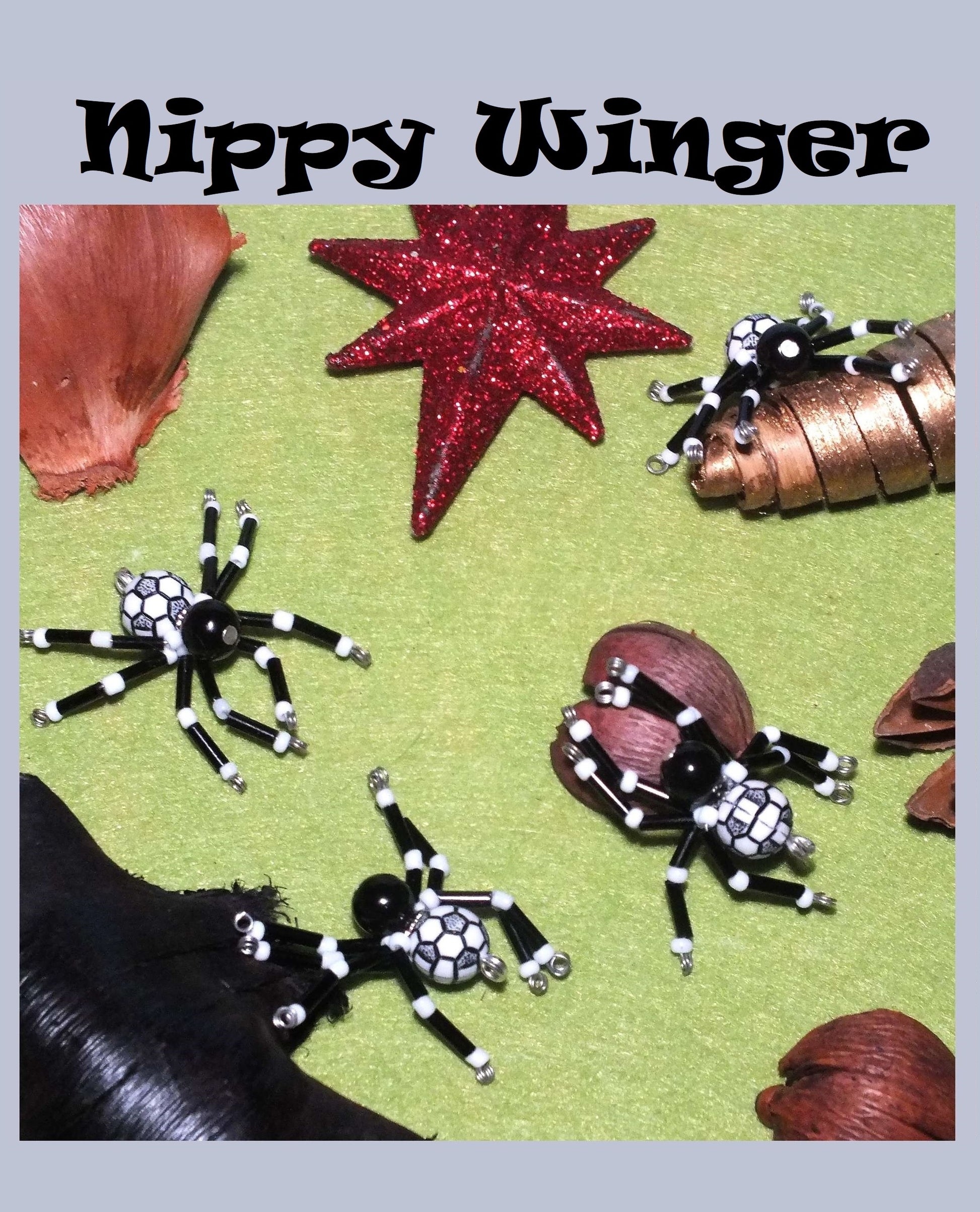 4-pack beaded spider charms - "Nippy Winger", handmade - plain or on lanyards