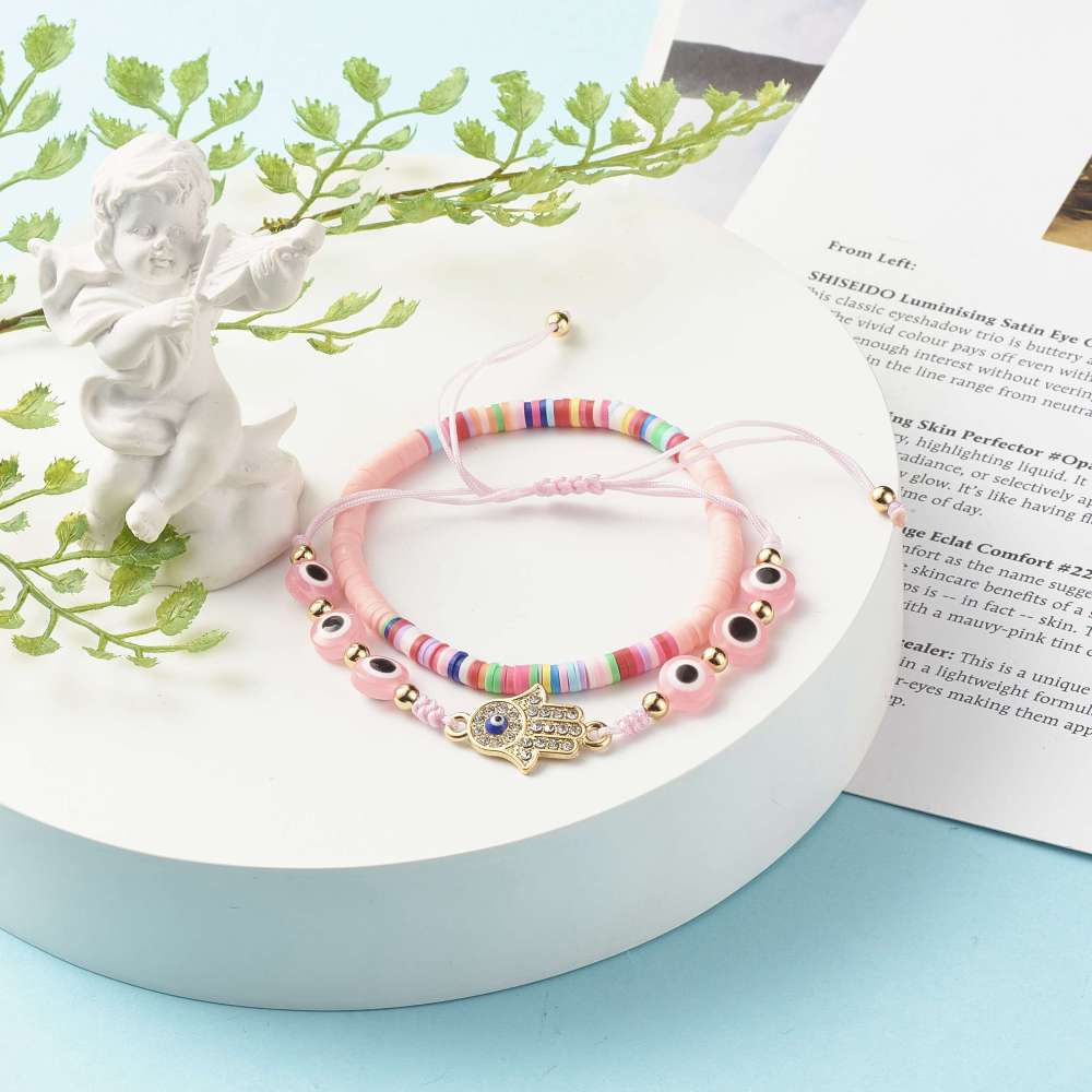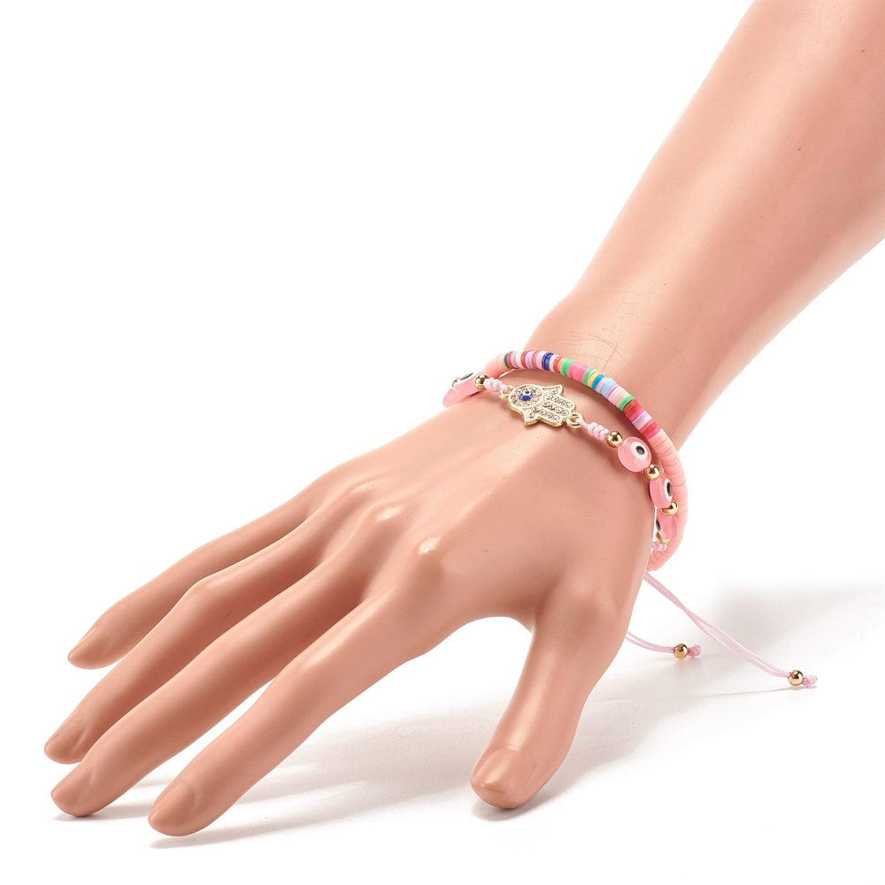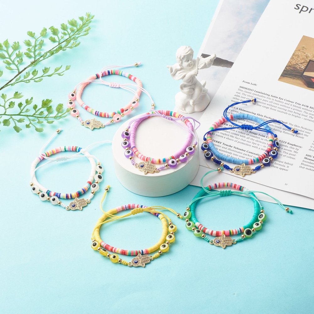 10-30 matching evil eye & Heishi clay multicoloured friendship bracelets