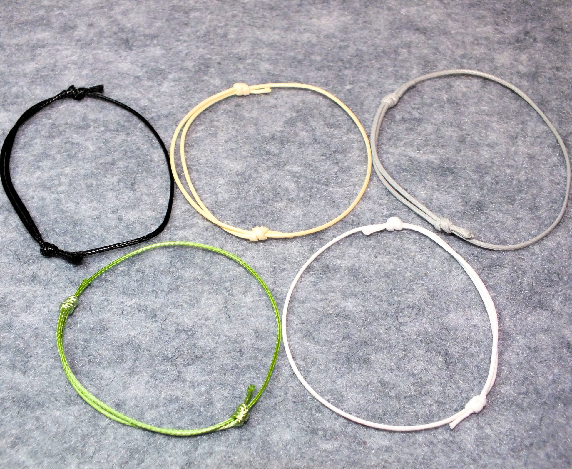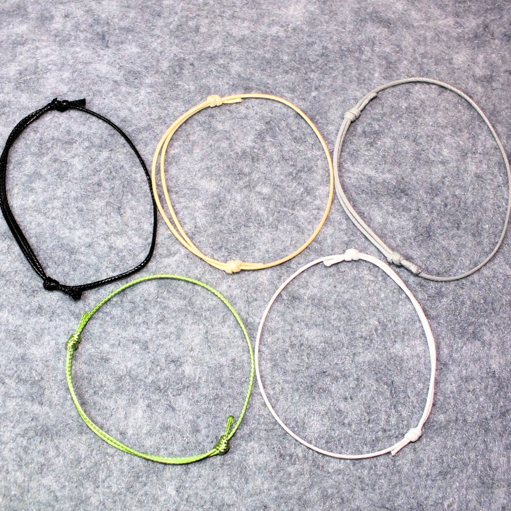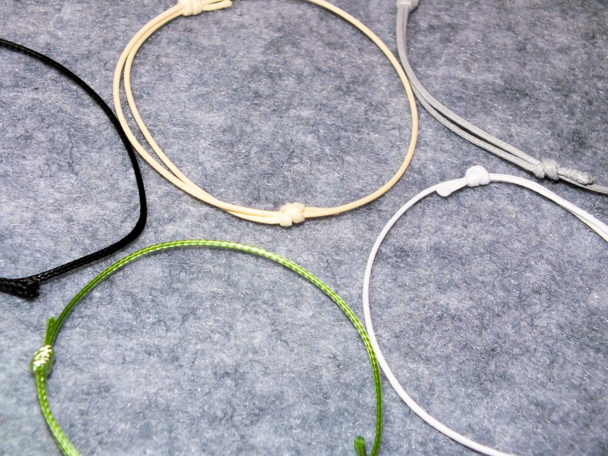 Detail - Simple waxed cord adjustable bracelets, neutral colours