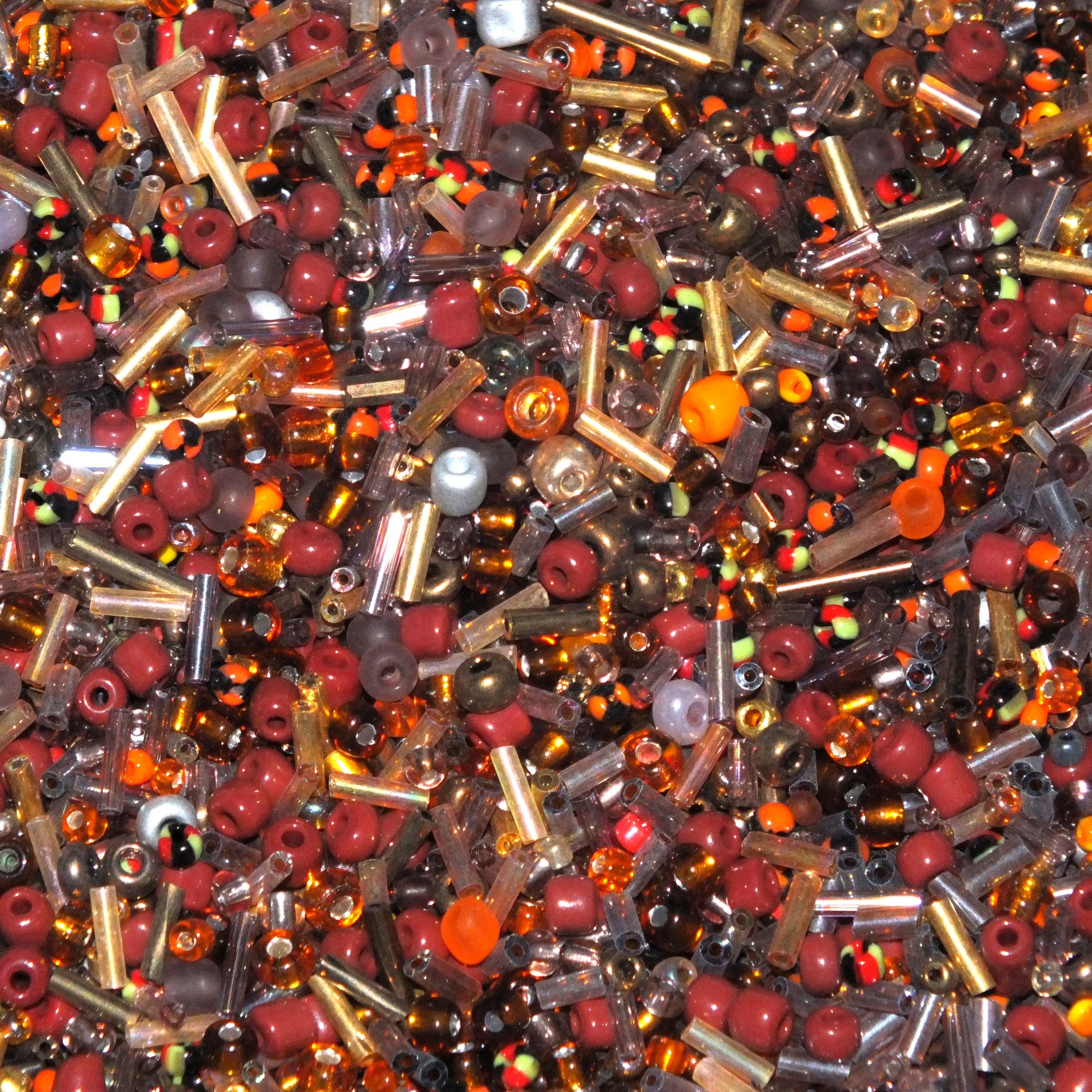 50g - 1kg Seed & bugle mixes - GOLDENROD mix, 1mm~7mm glass beads - brown, golden, orange