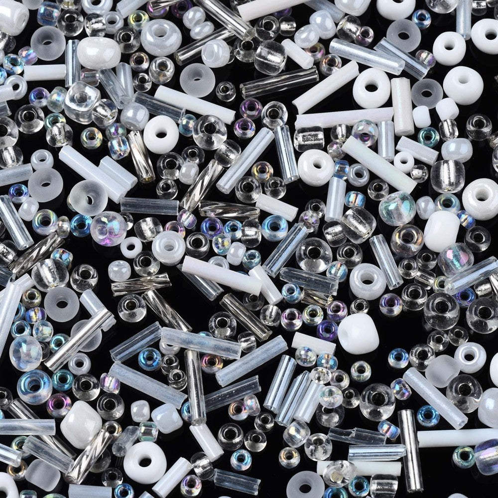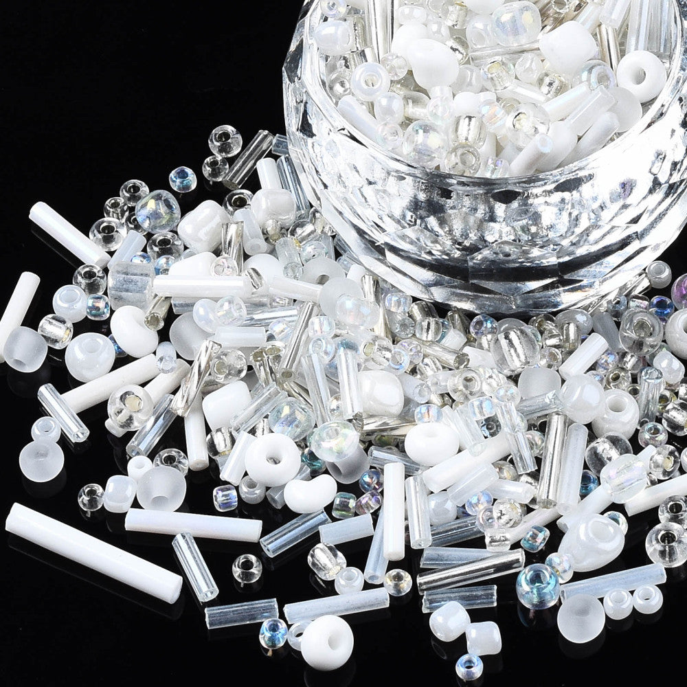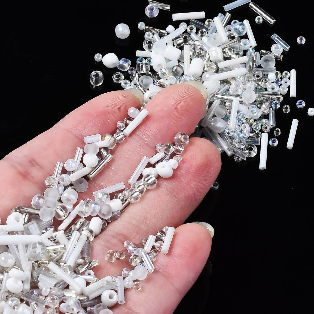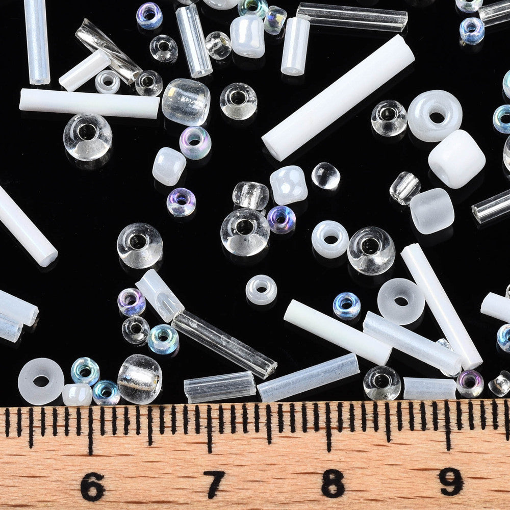 50g - 1kg Seed & bugle mixes - ICE mix, 1mm~7mm glass beads - white, clear
