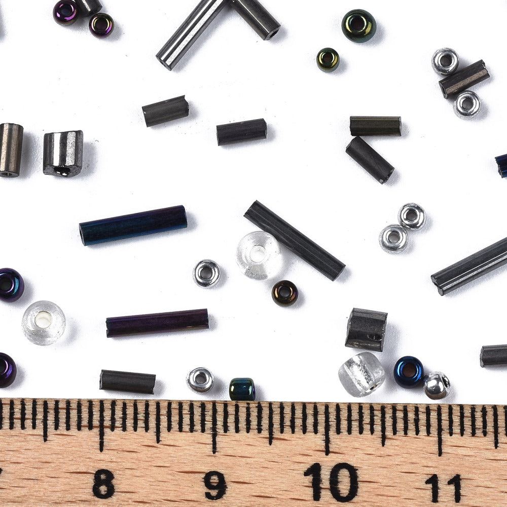 50g - 1kg Seed & bugle mixes - MIDNIGHT mix, 1mm~7mm glass beads - black, silver, iris