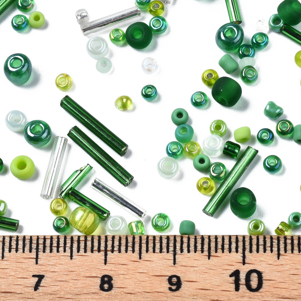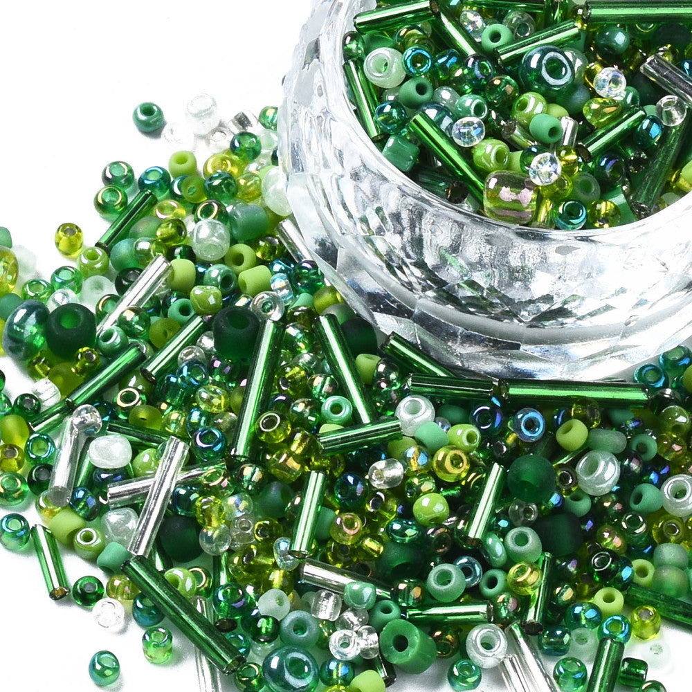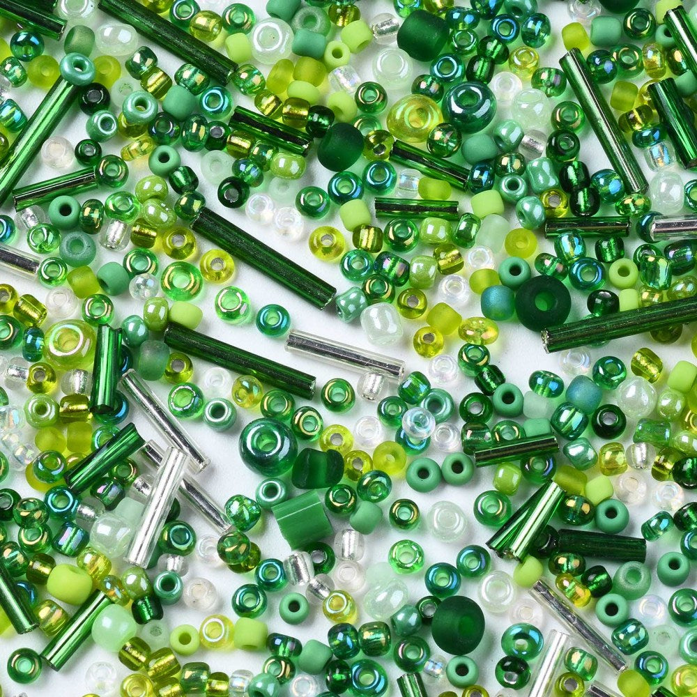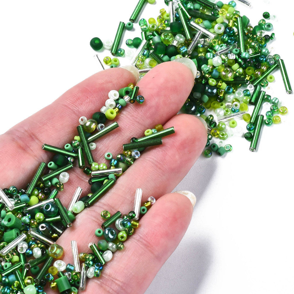 50g - 1kg Seed & bugle mixes - SPRING mix, 1mm~7mm glass beads - green, clear