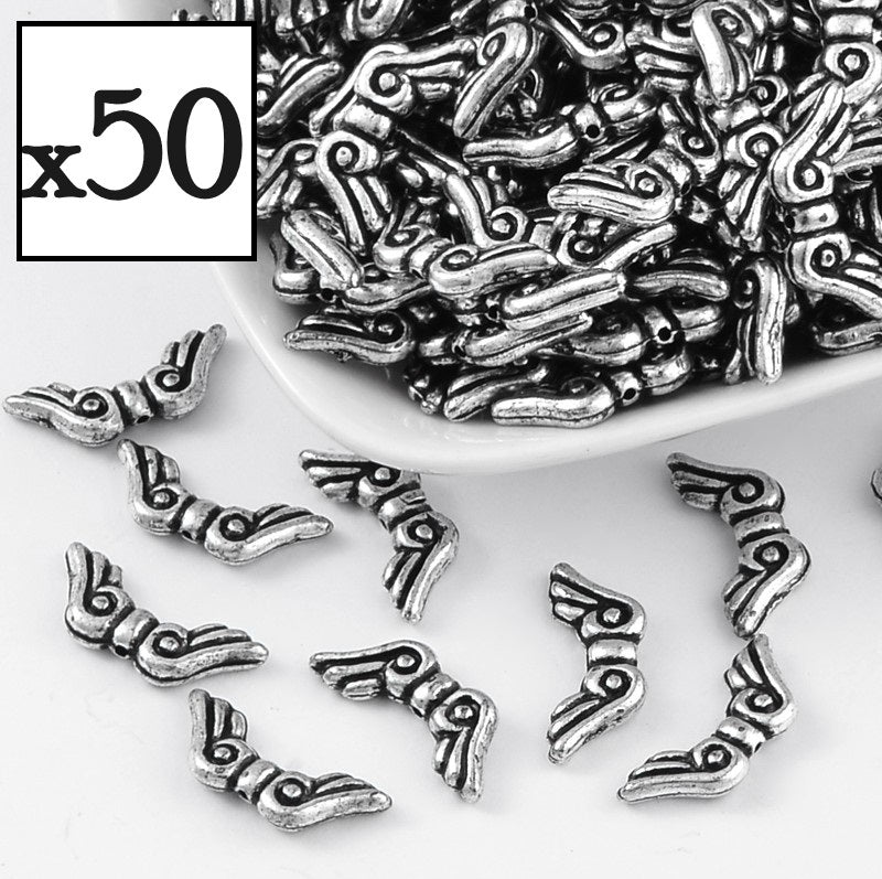 Bead type - Acrylic wing spacer beads, antique silver tone.