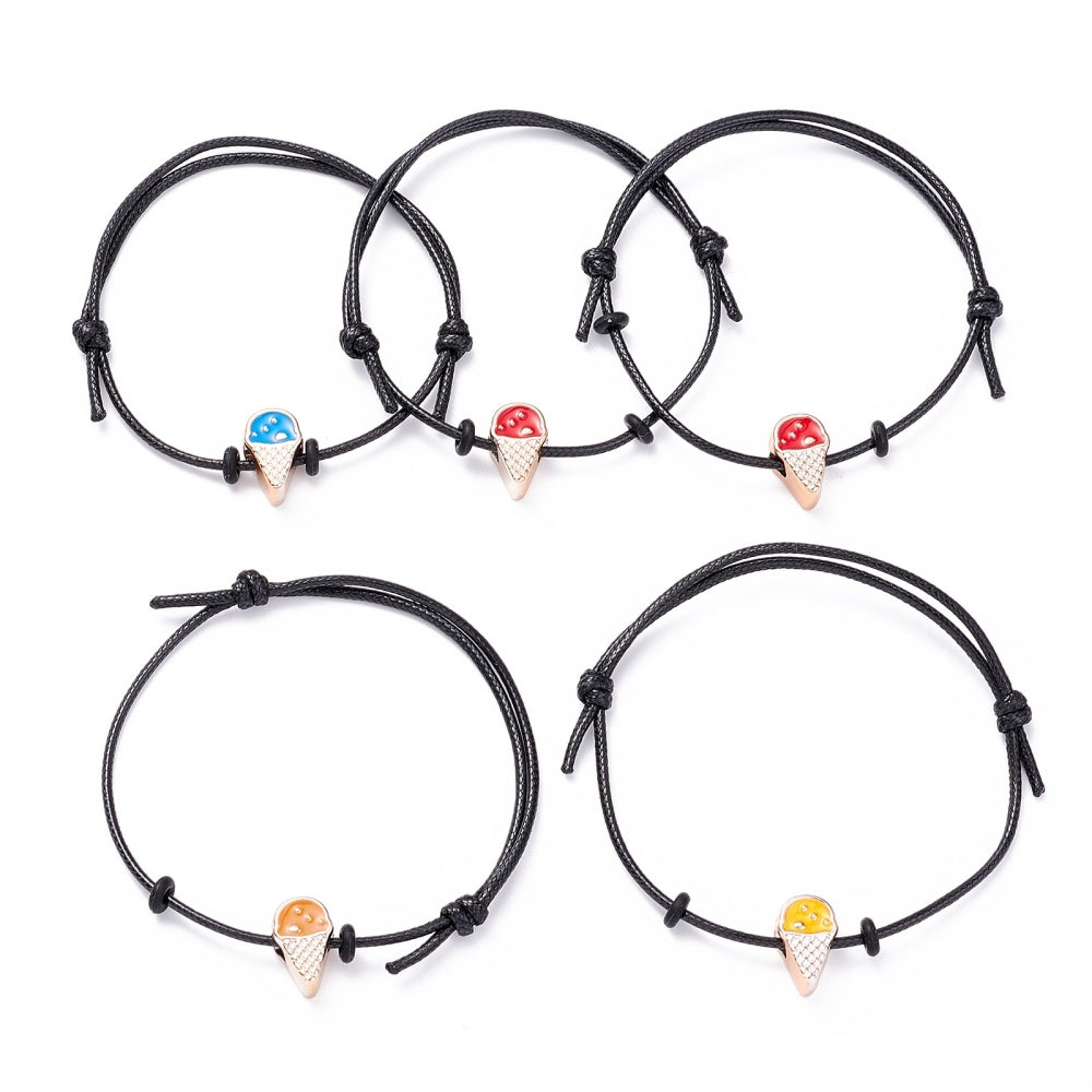 5pcs adjustable ice cream charm bracelets, black - job lot friendship bracelets