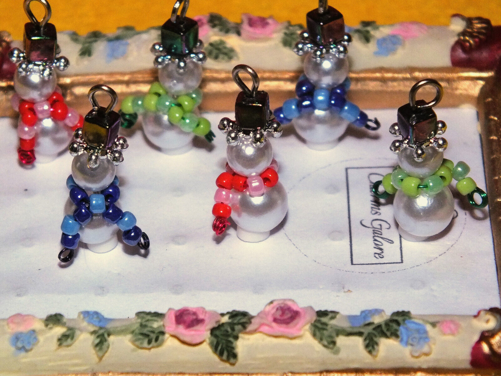 Scarf-wearing Snowman charms (6-12pcs, plain, on clasps or lanyards)