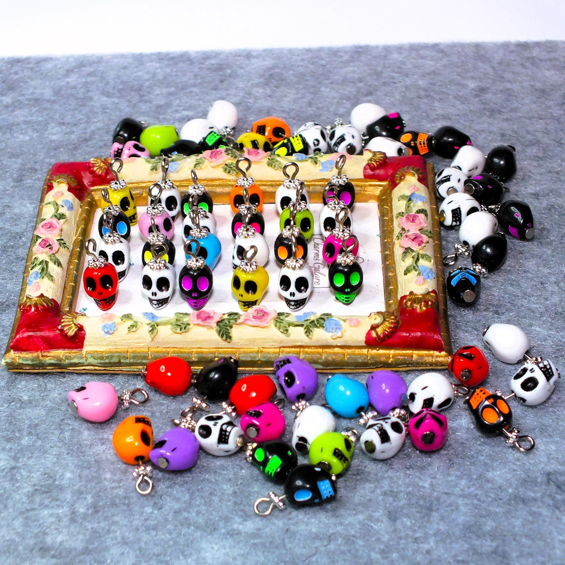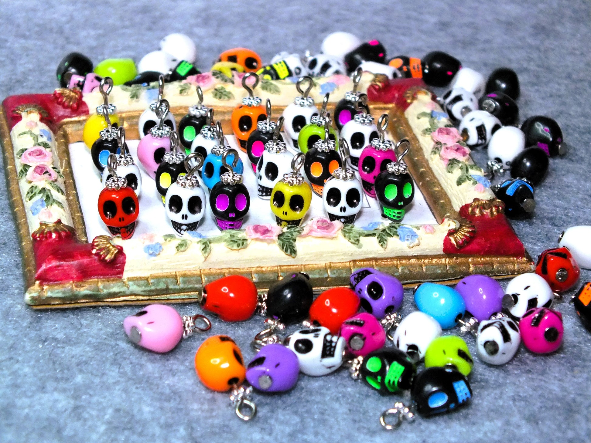 - Bead type - Acrylic skull charms with metal alloy findings, three styles (white, black + neon, multicoloured - 24pcs per style).