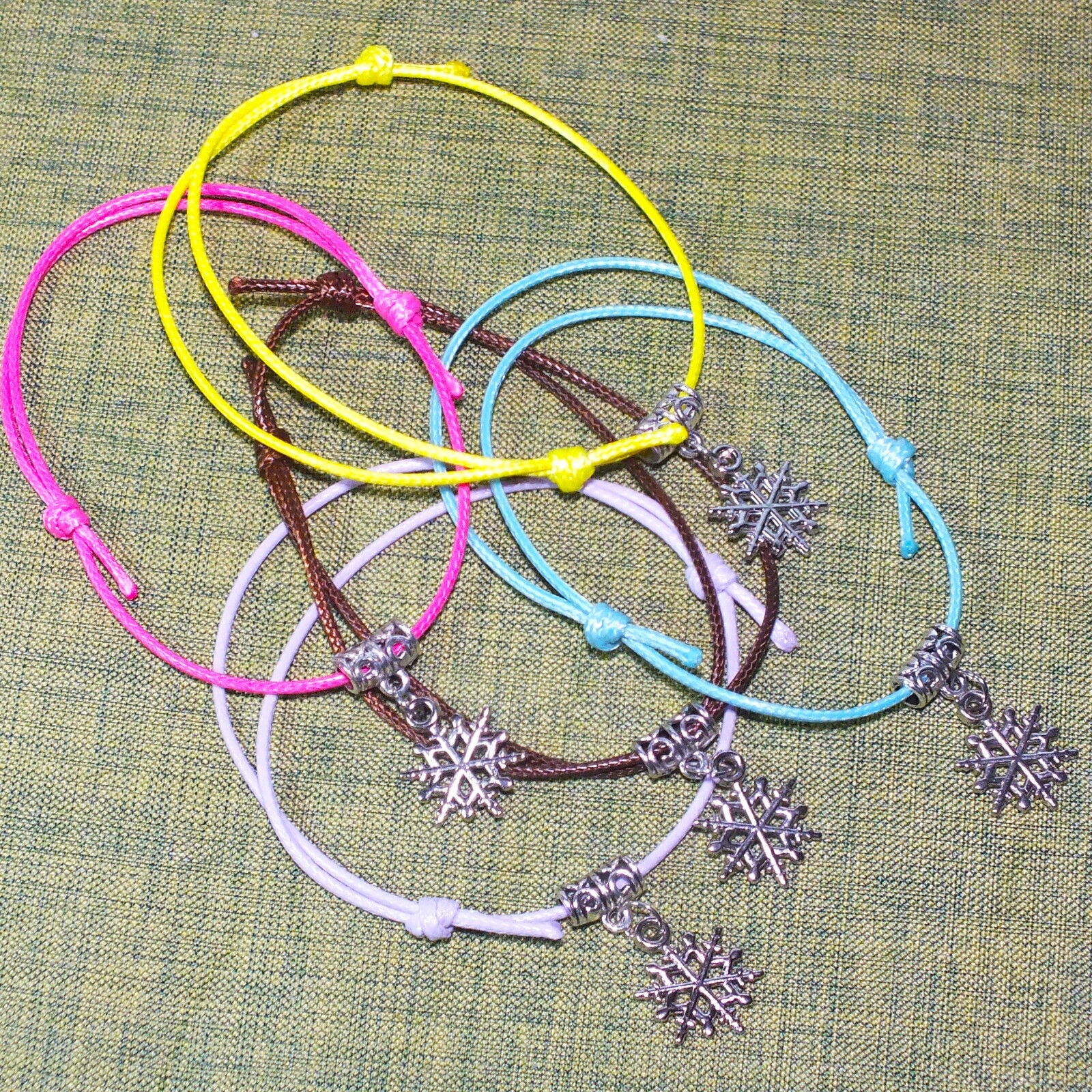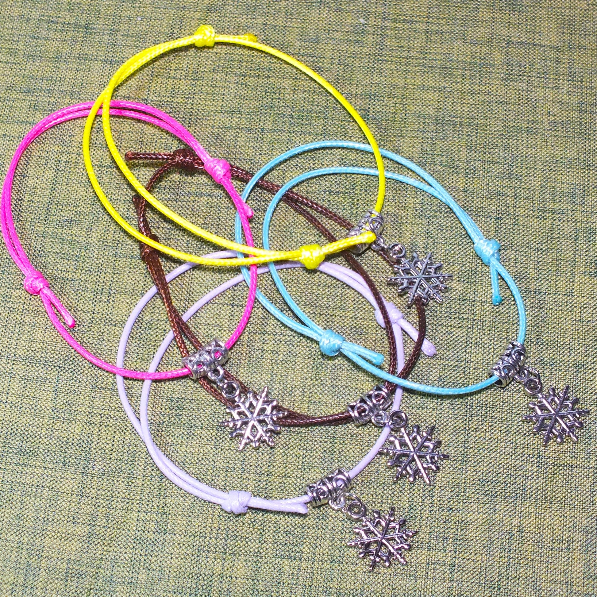 Adjustable multicoloured SNOWFLAKE / STAR / BUTTERFLY friendship charm bracelets, packs of 5 / 10 / 20 / 30