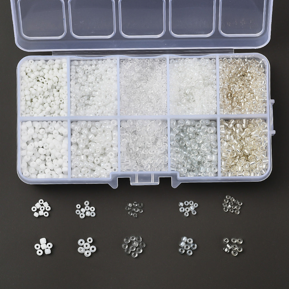 150g assorted white & clear 2mm & 3mm seed bead selection box
