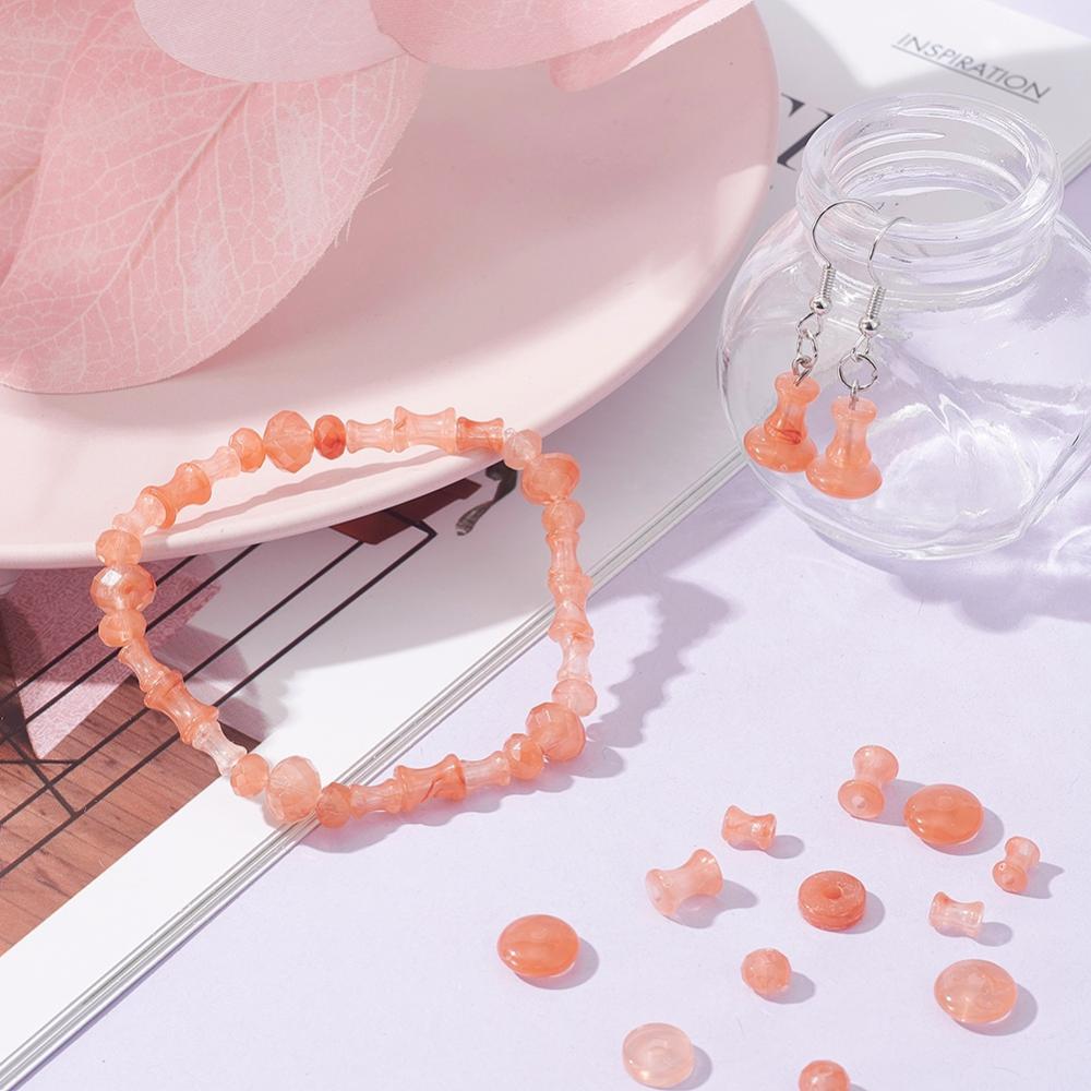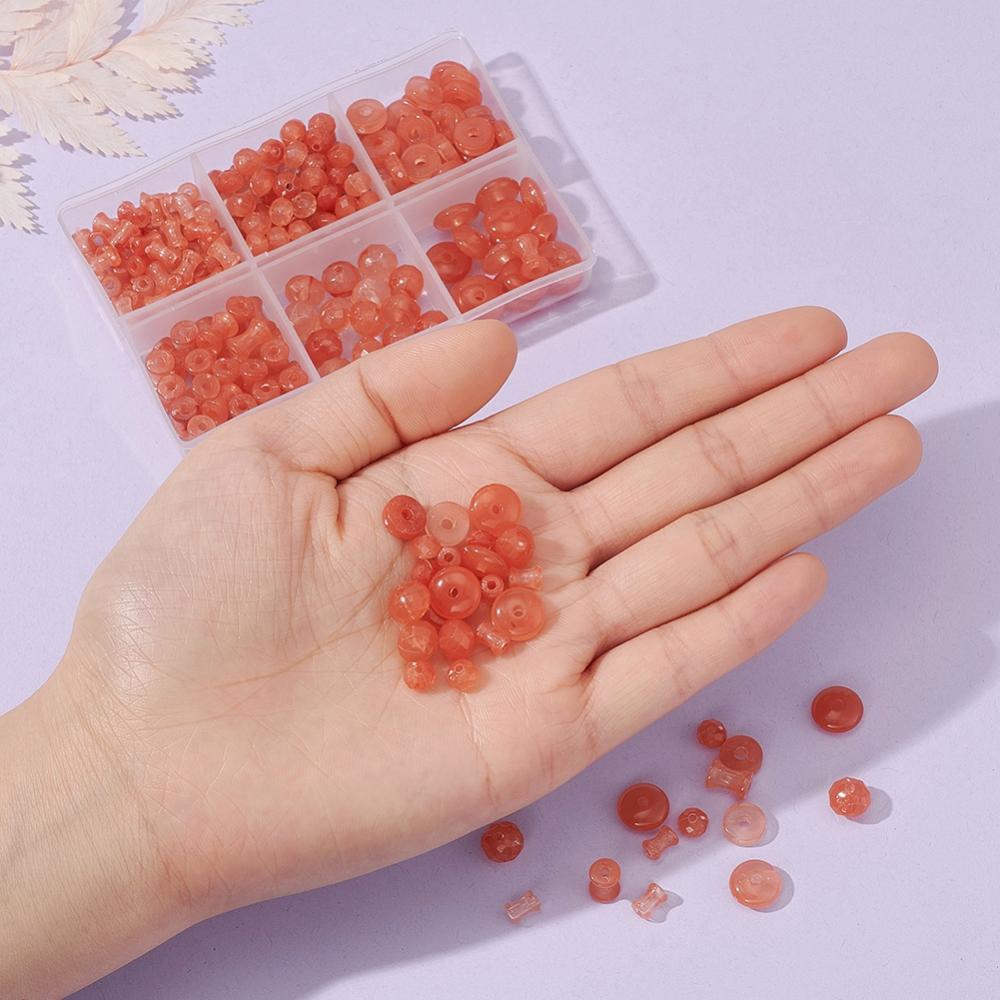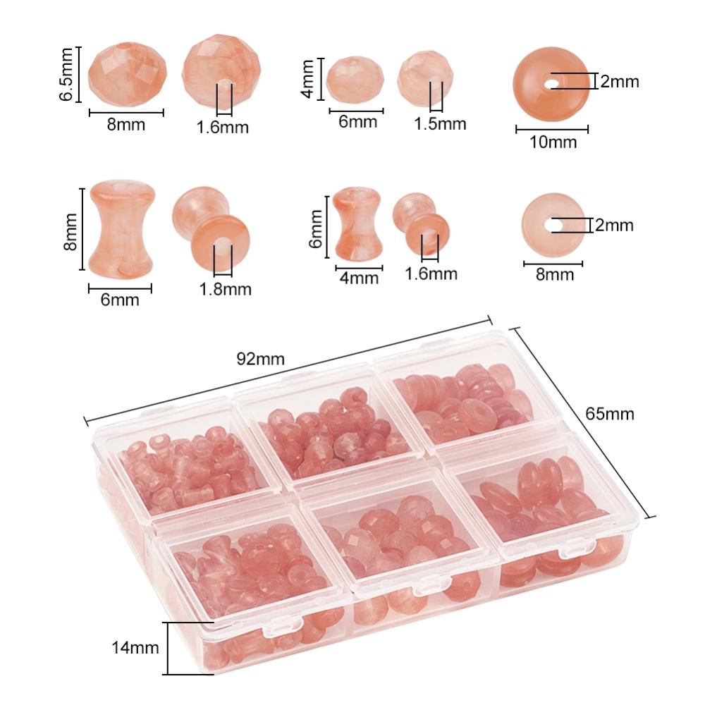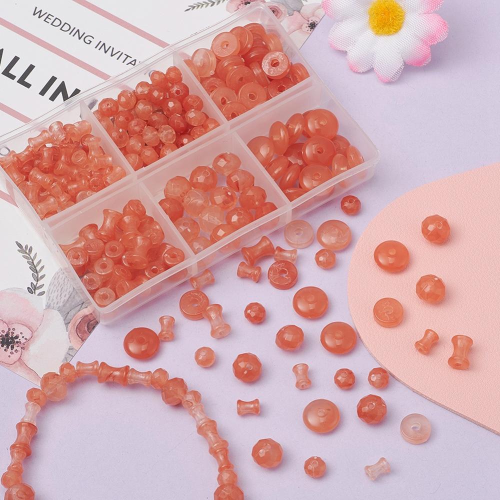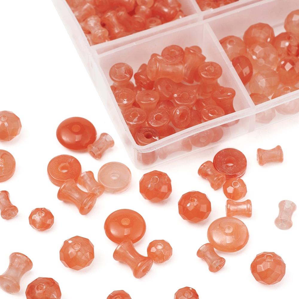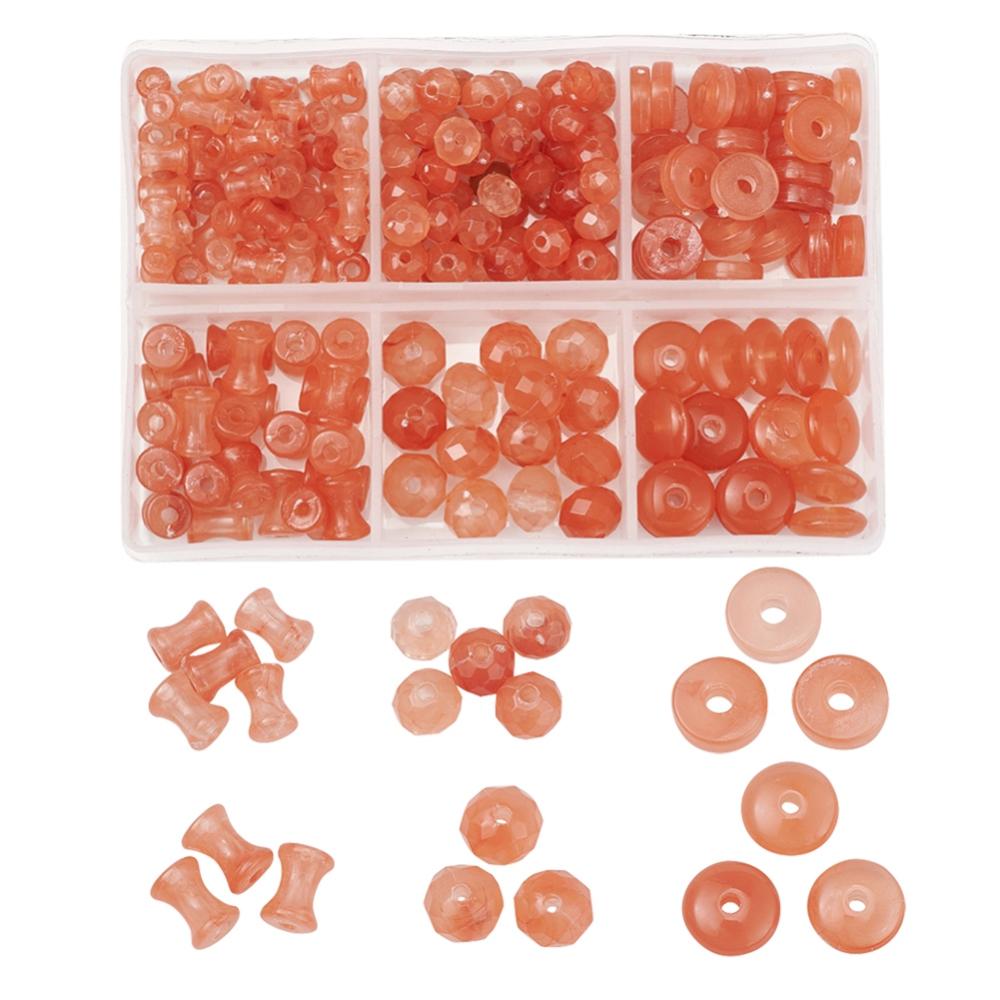 220pcs assorted shapes - coral imitation gemstone bead box. Rondelles, discs, diabolo shapes.