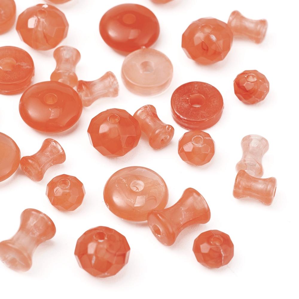 Acrylic beads - imitation gemstone effect, coral colour. Approx. 220pcs.