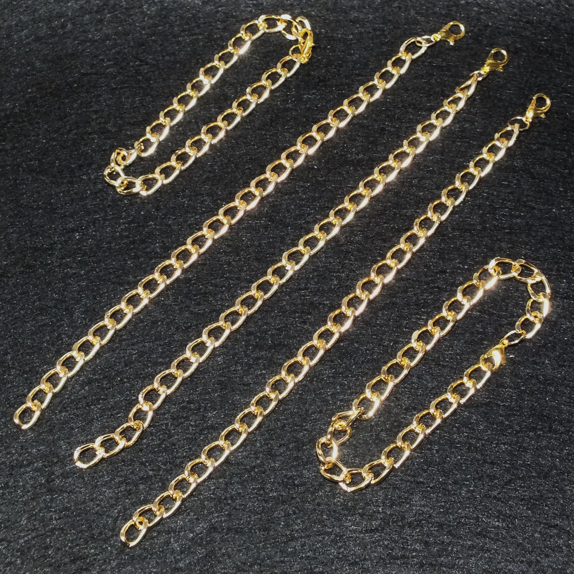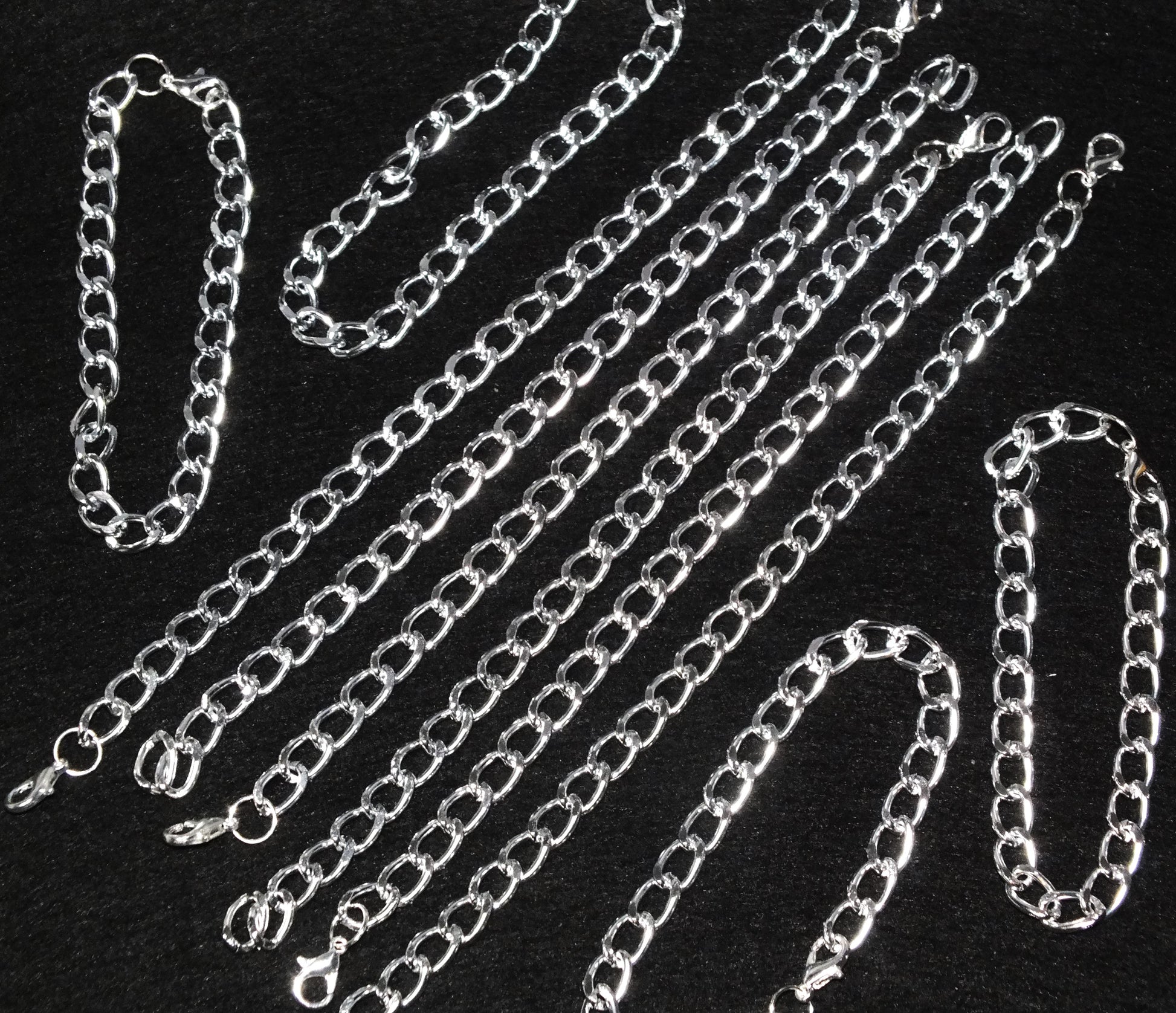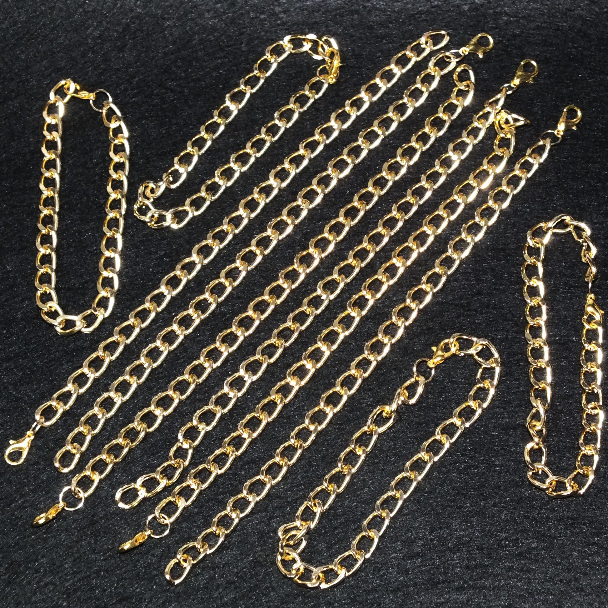 Readymade silver / gold tone curb chain 7.5" bracelets, aluminium, w lobster clasps, for DIY jewellery making.