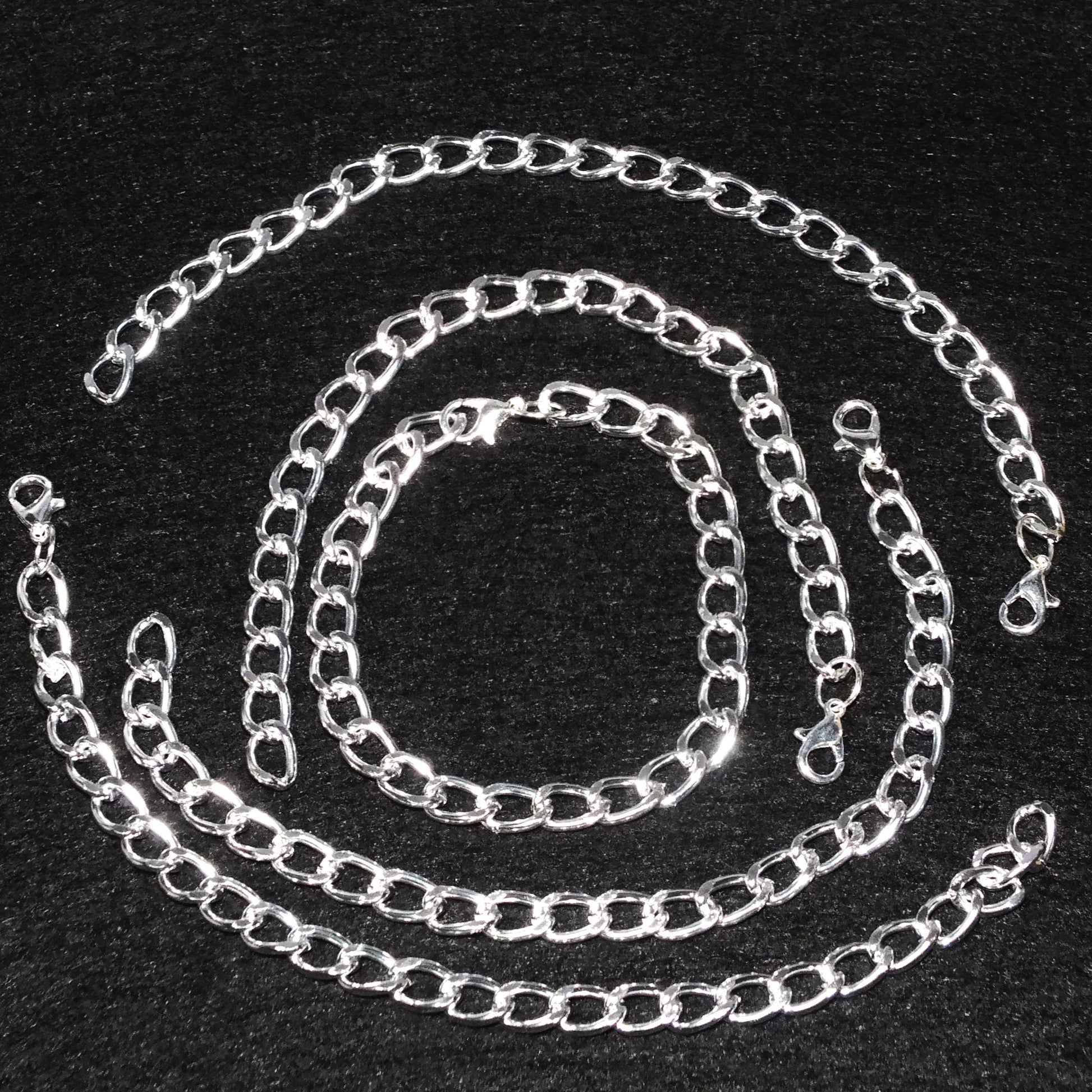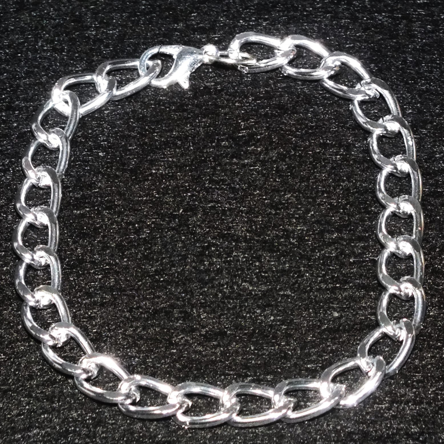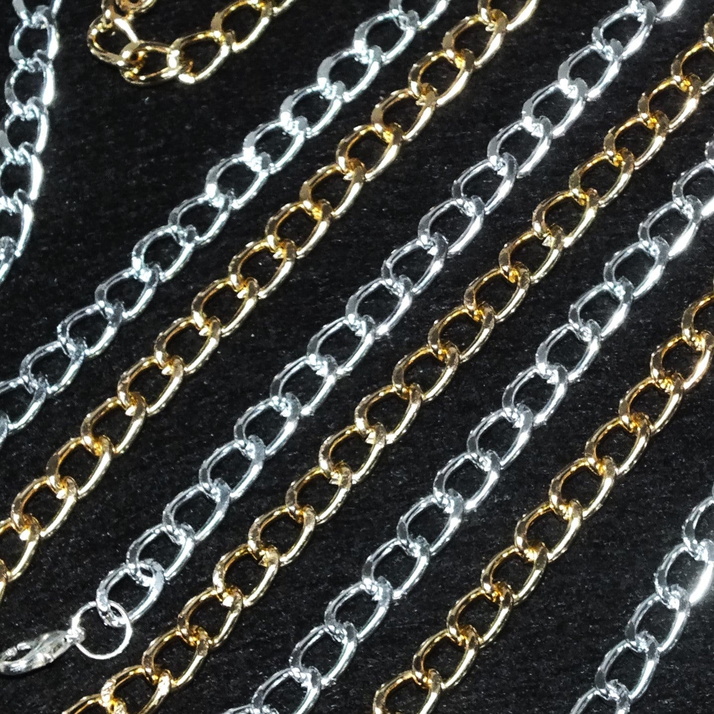 Readymade silver / gold tone curb chain 7.5" bracelets, aluminium, w lobster clasps, for DIY jewellery making.