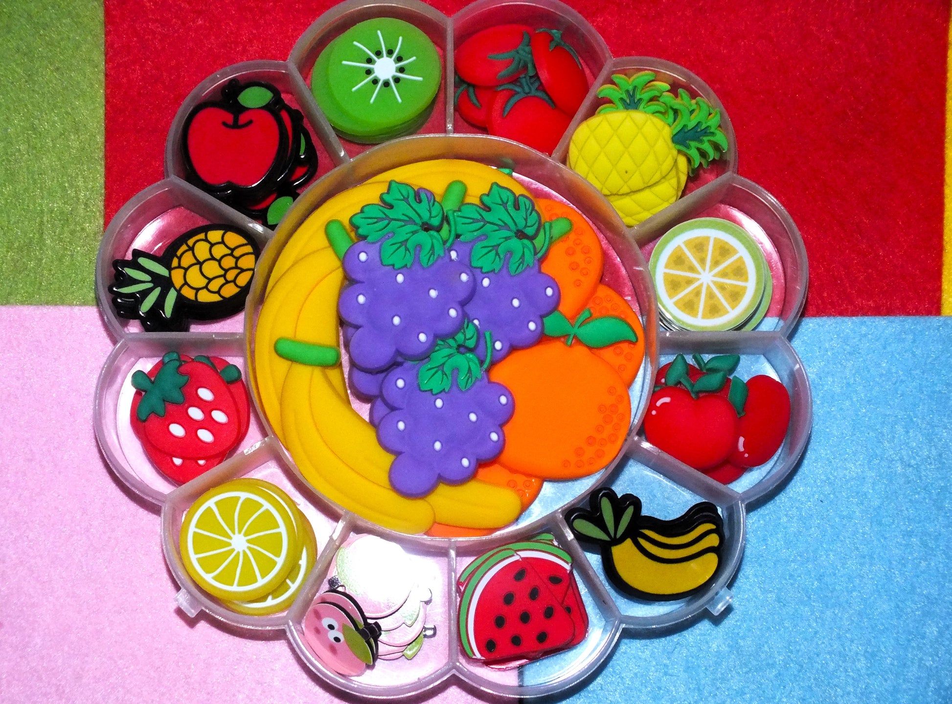 81pcs FRUIT cabochons - 15 styles, 17.5mm - 64mm flatbacks in hard plastic and soft PVC.