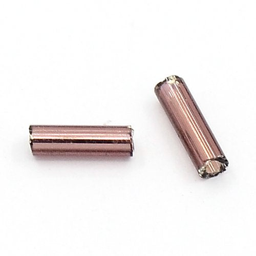 Silver lined rosy brown 6-8mm glass bugle beads, 50g