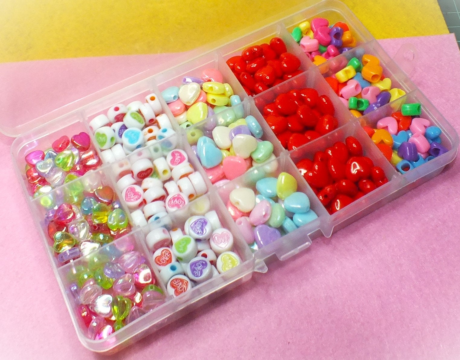 396pcs Love heart beads craft box - 5 styles, in a plastic storage box