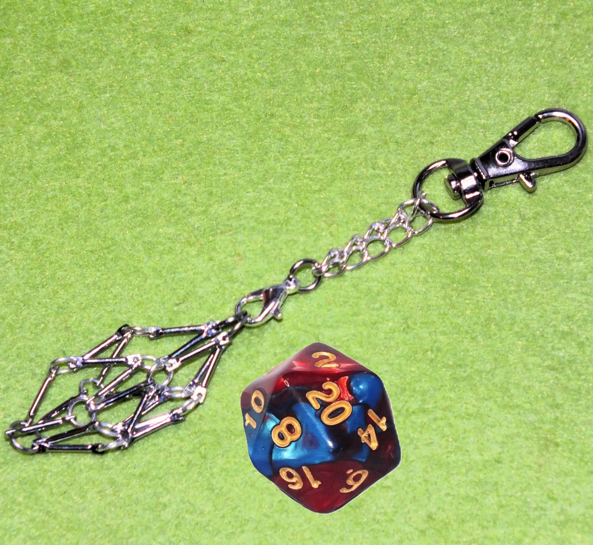 - Blue + purple twotone / black + red twotone / red + blue twotone d20 - Choose a standard d20 in your preferred colour to come with your keyring!