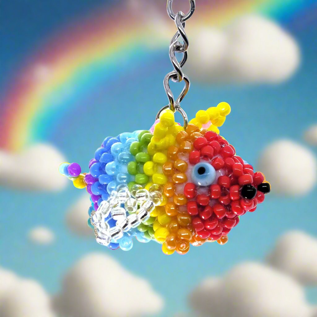 Flying Pride piggies - handmade rainbow beaded pigs (squishy!) on a keyring!