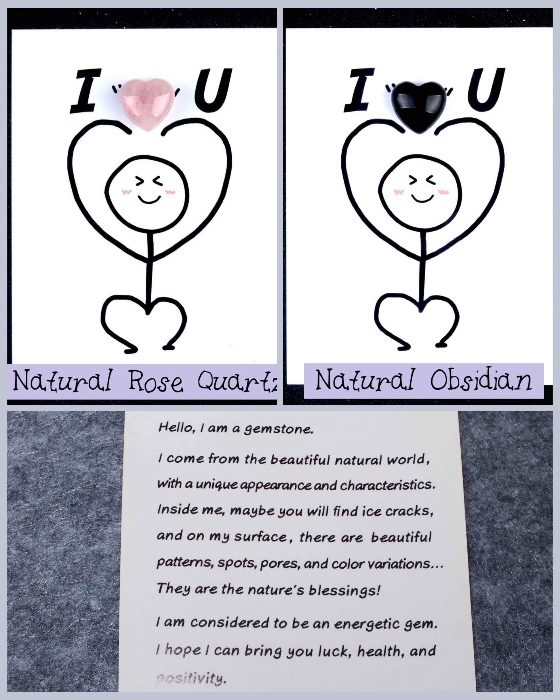 - Heart size - Approx 15mm, your choice of gemstone. It is attached to the card using a 'glue dot' - easily removable without damaging the card or the gemstone, if preferred.