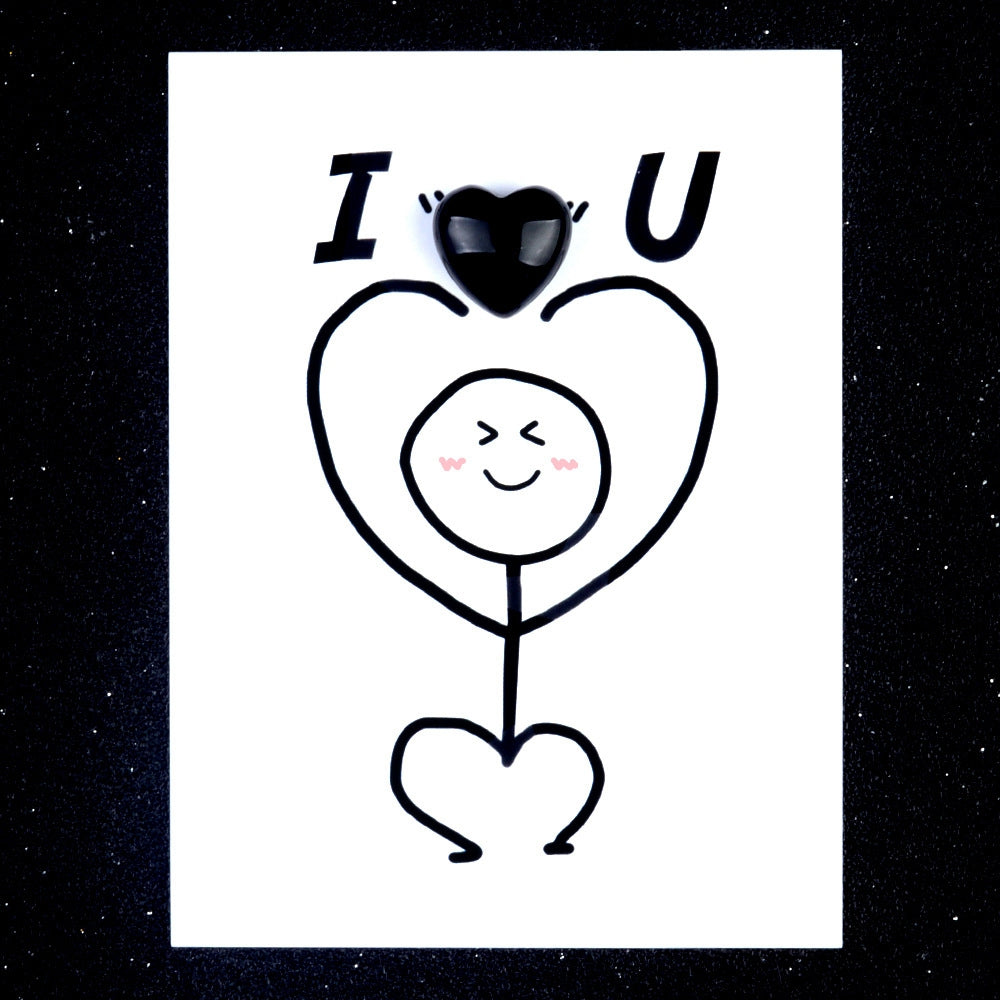 - Card details - A fun stick-figure image as shown - remind a friend or loved one that you're thinking of them and that they're special! Wording reads:
