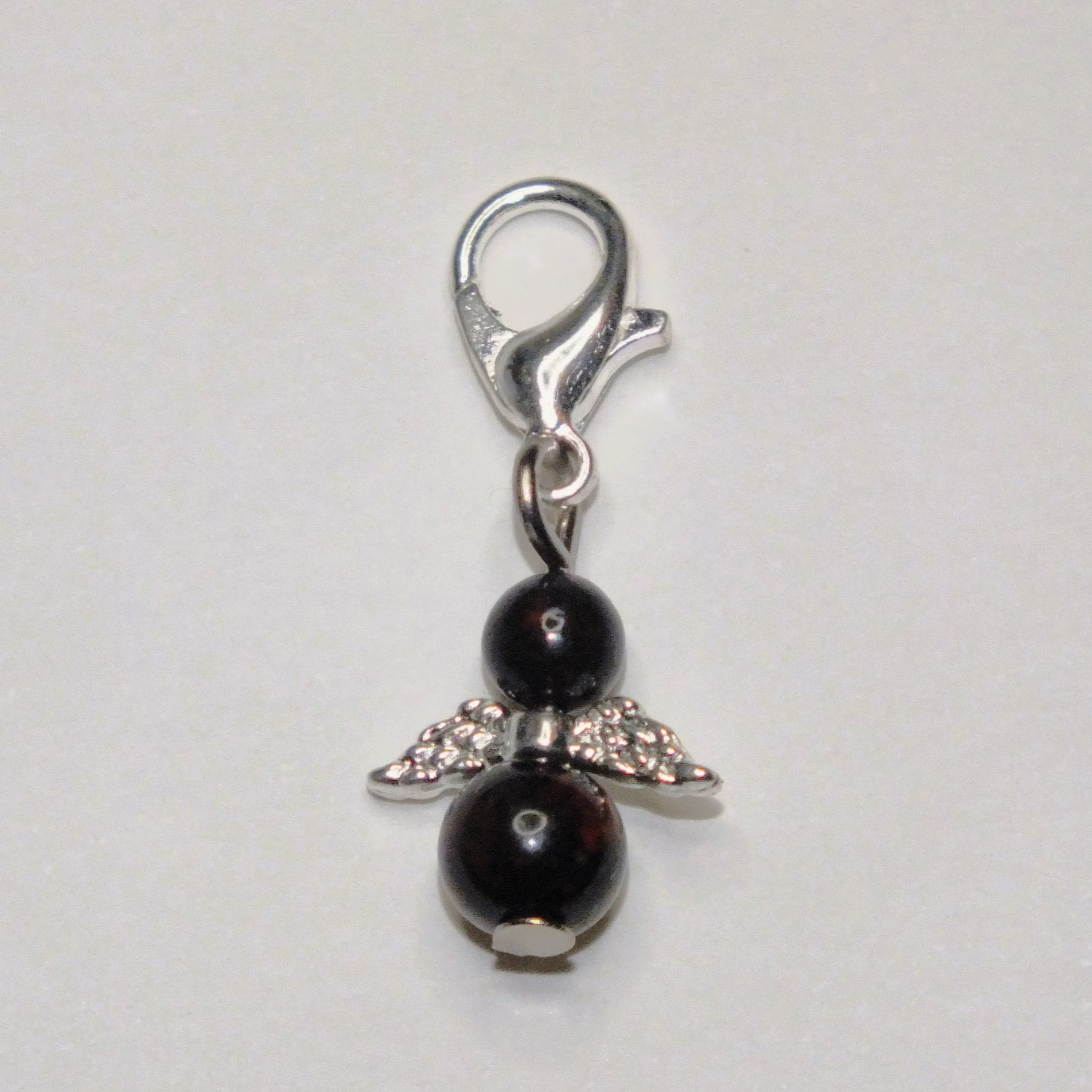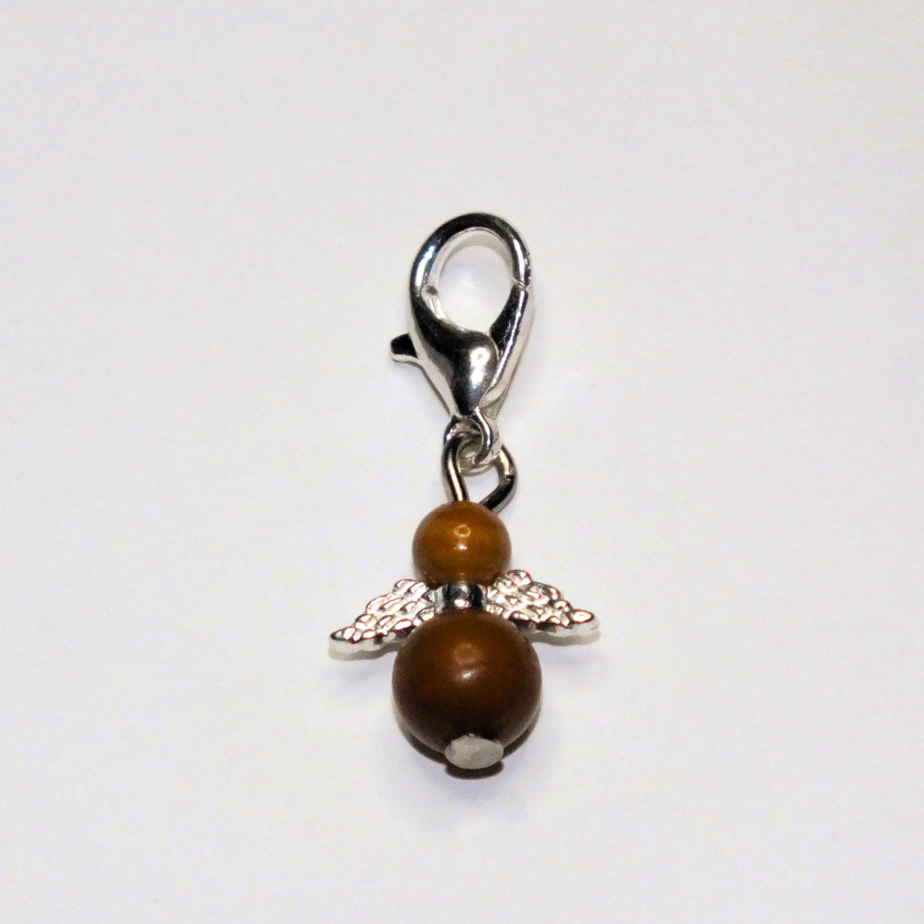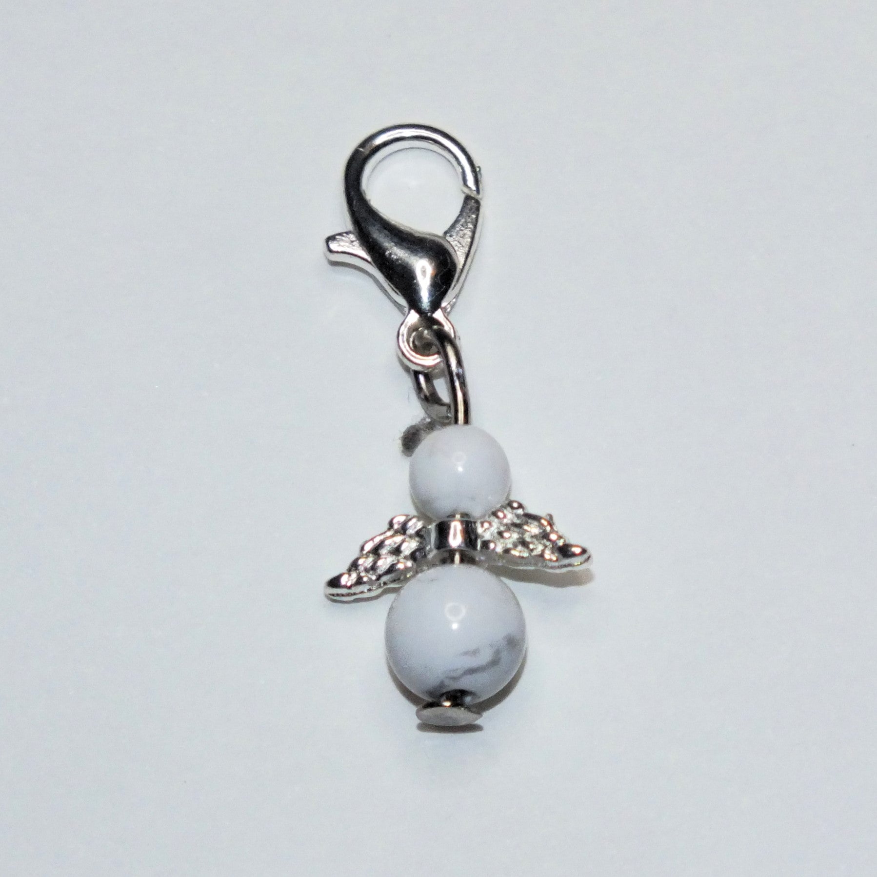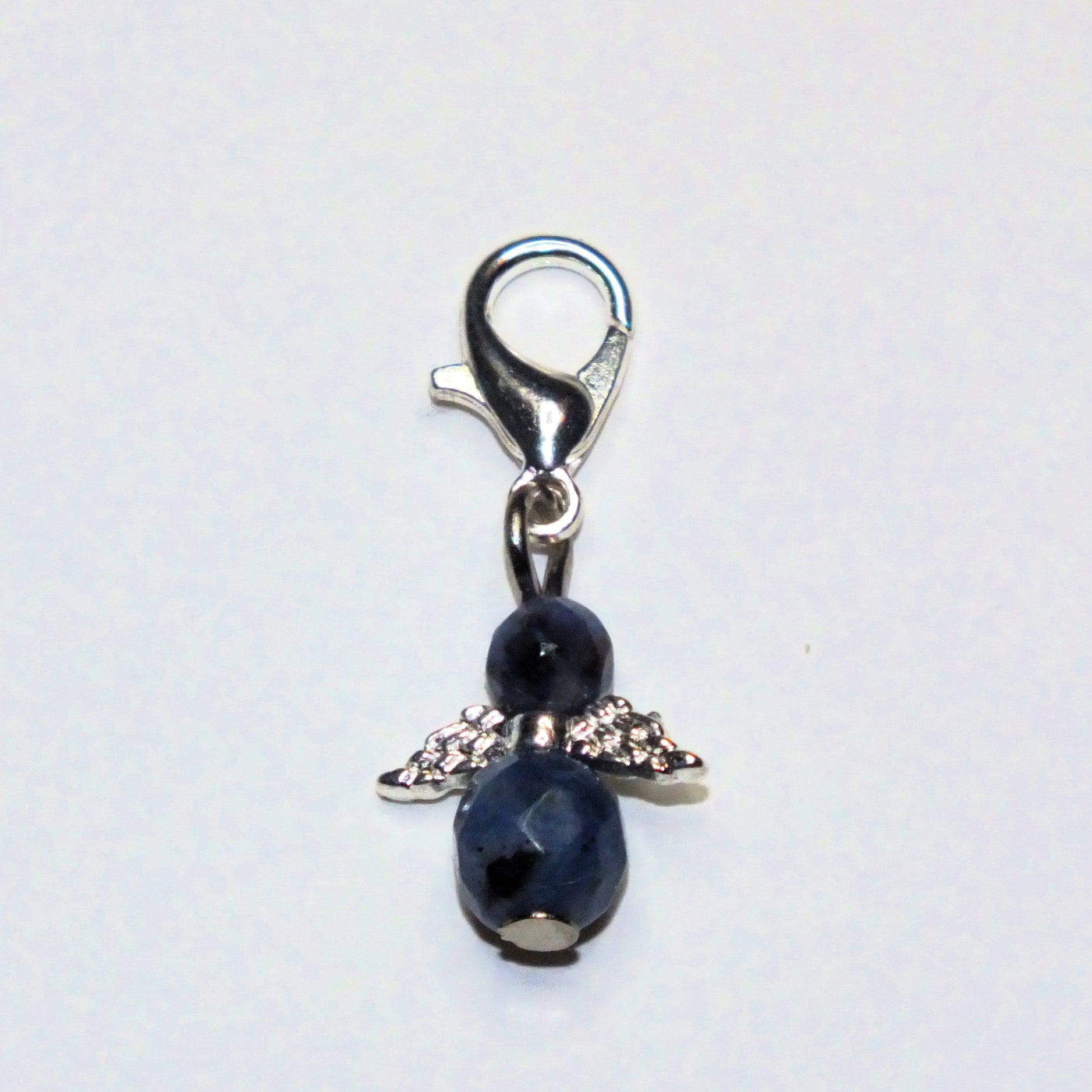 Handmade natural gemstone Guardian Angel charms on clasps - Sodalite, Rose Quartz, Howlite, Bloodstone, Wood Lace Stone, Chinese Jade