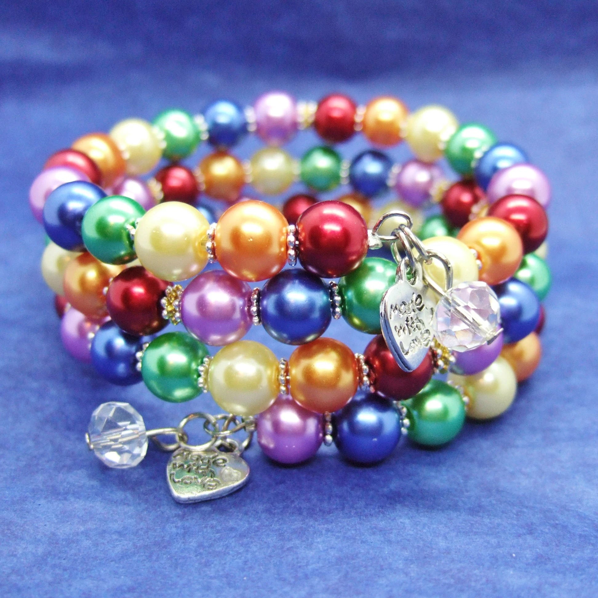 Handmade pride rainbow wraparound pearl bracelet with charms.