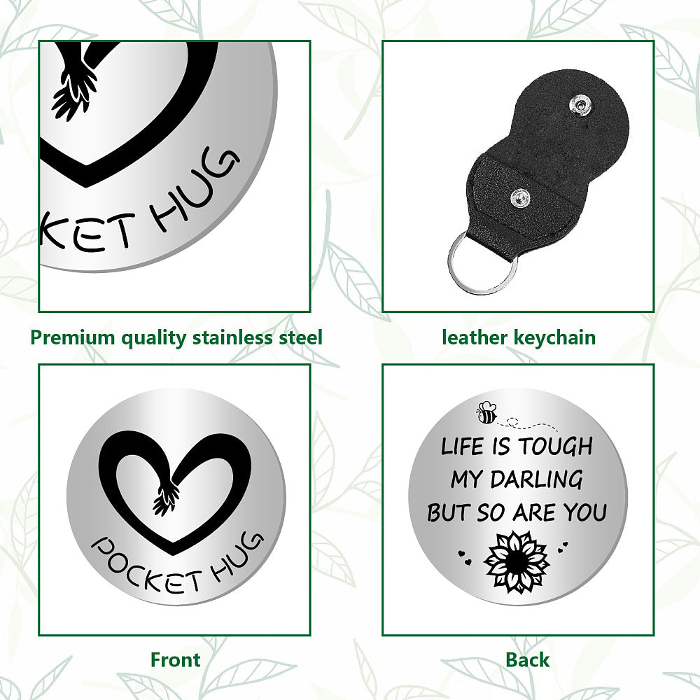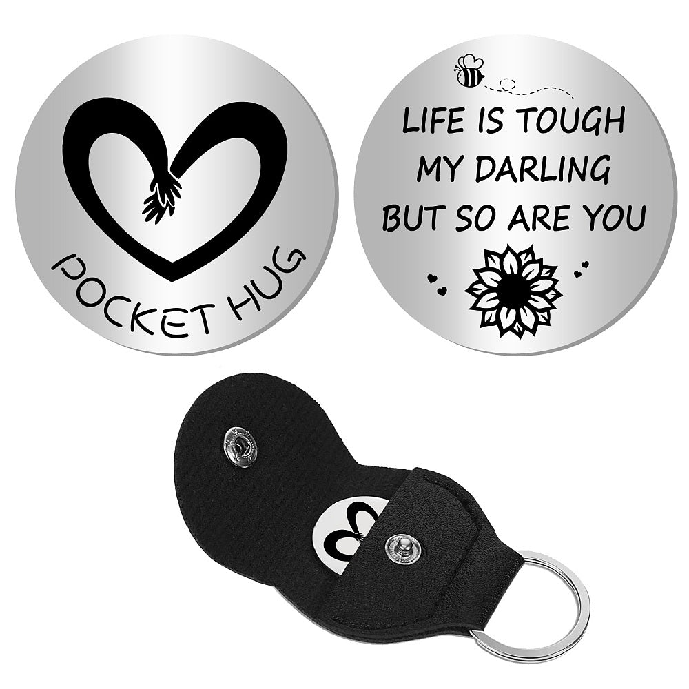 Little Pocket Hug coin + leather keyring holder (99F) - remind a loved one that you're thinking of them