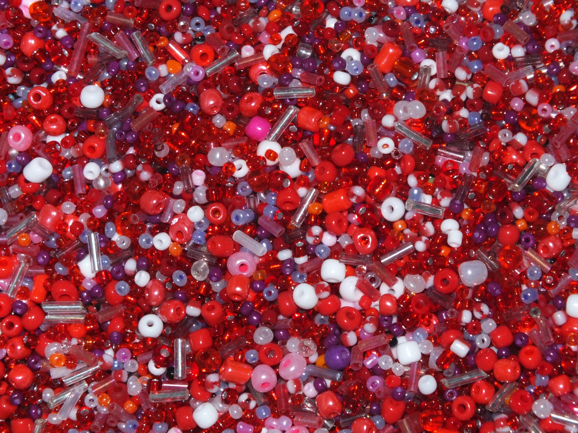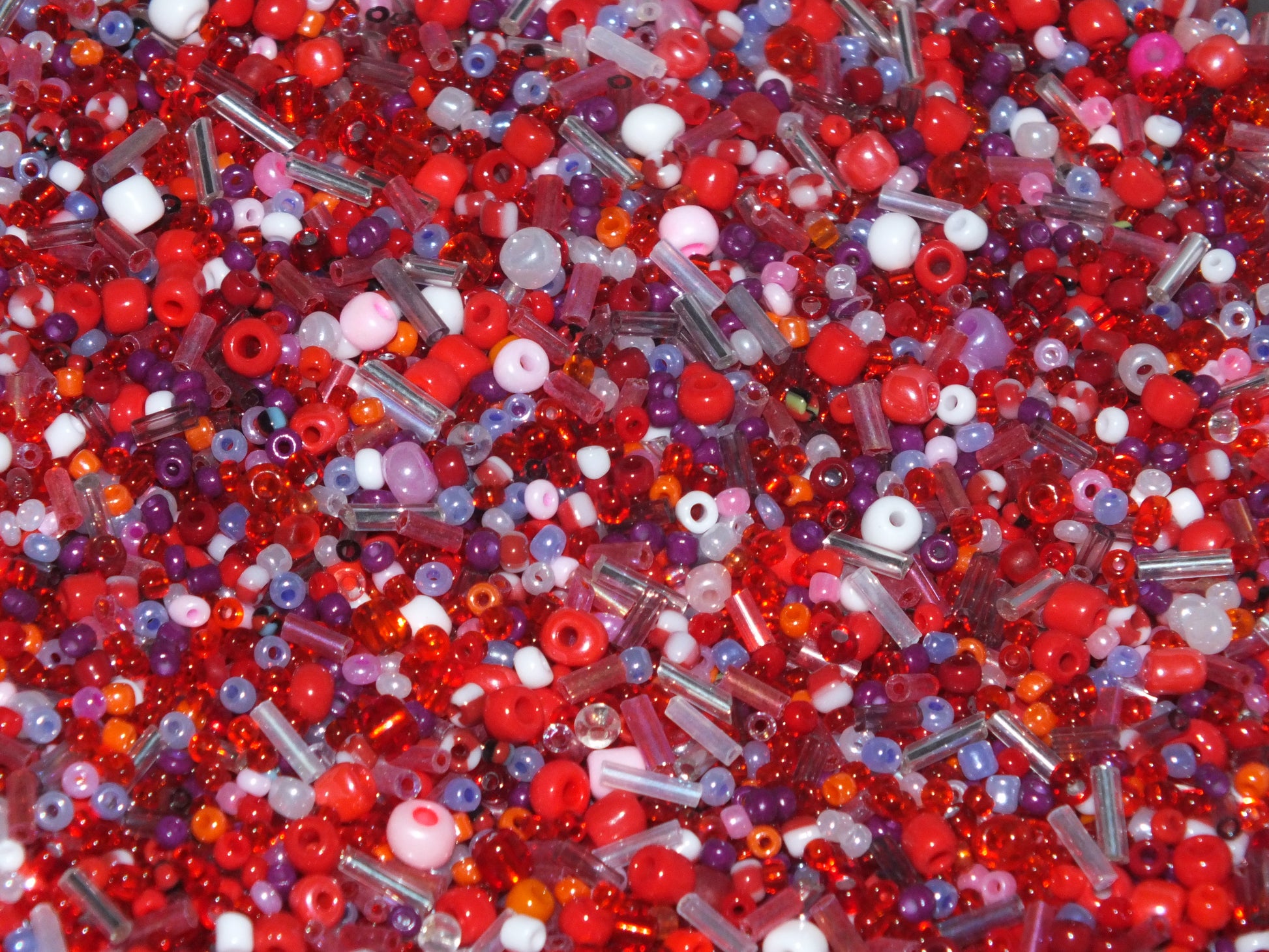 50g - 1kg Seed & bugle mixes - BERRY mix, 1mm~7mm glass beads - red, pink + more