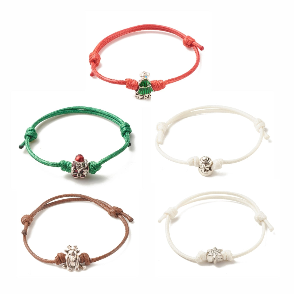 5 - 50 festive adjustable friendship charm bracelets, lovely Christmas gifts!