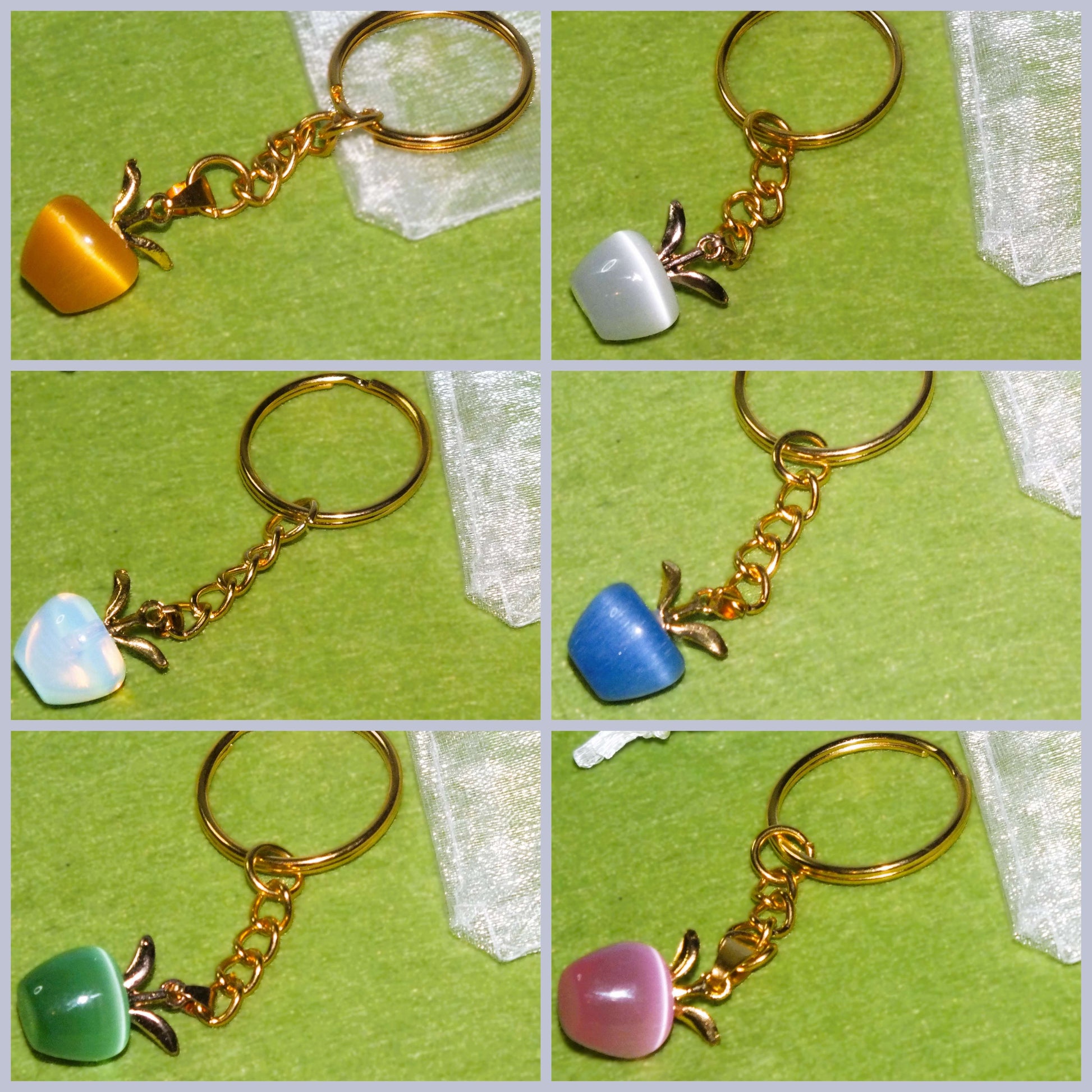 Thank you teacher gift - keyring with opalite apple charm (gold tone)